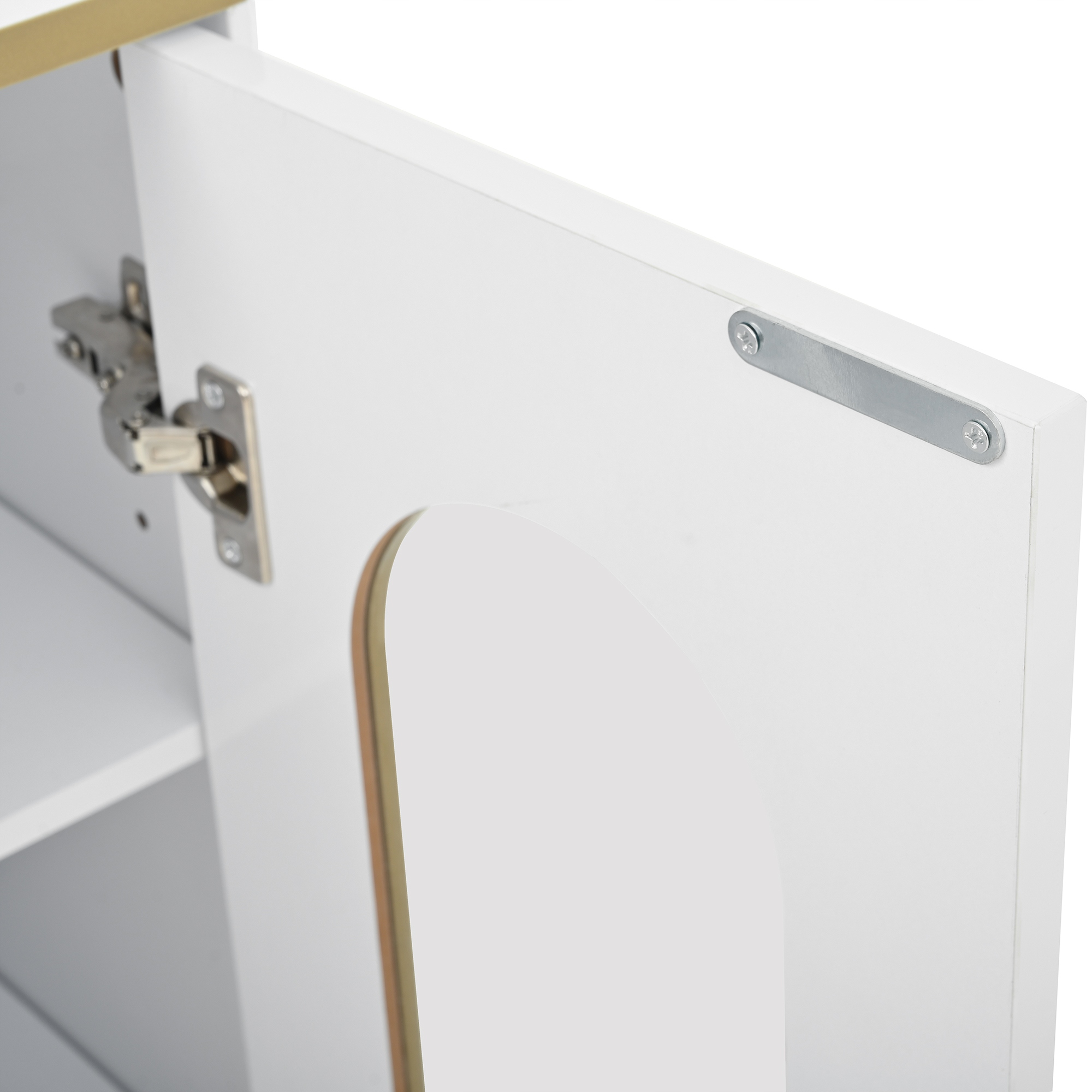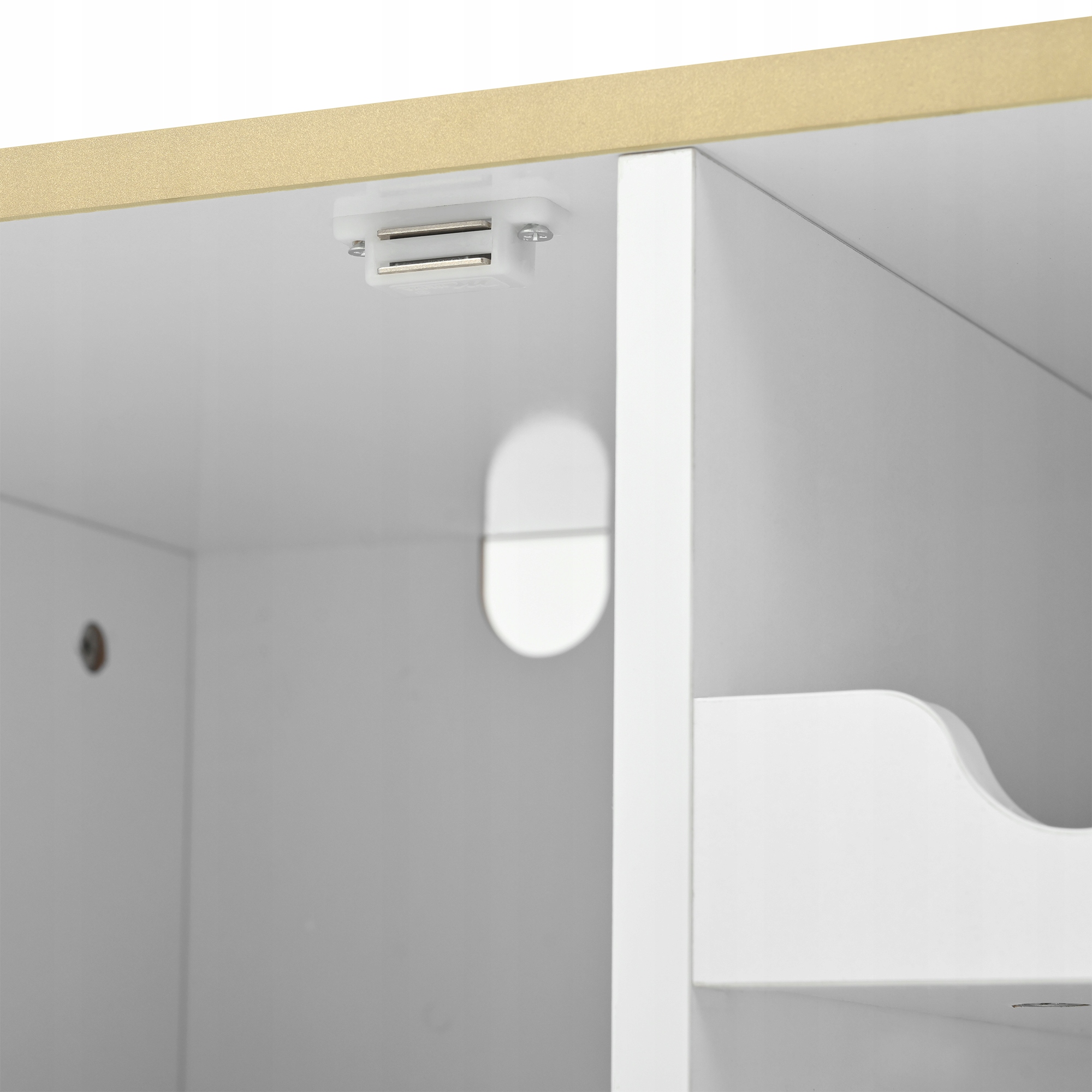 - – виготовлено з міцного МДФ з гладким білим покриттям для довговічності. Ручки та ніжки з золотистого алюмінієвого сплаву з оцинкованим покриттям забезпечують вишуканий дизайн і захист від іржі.