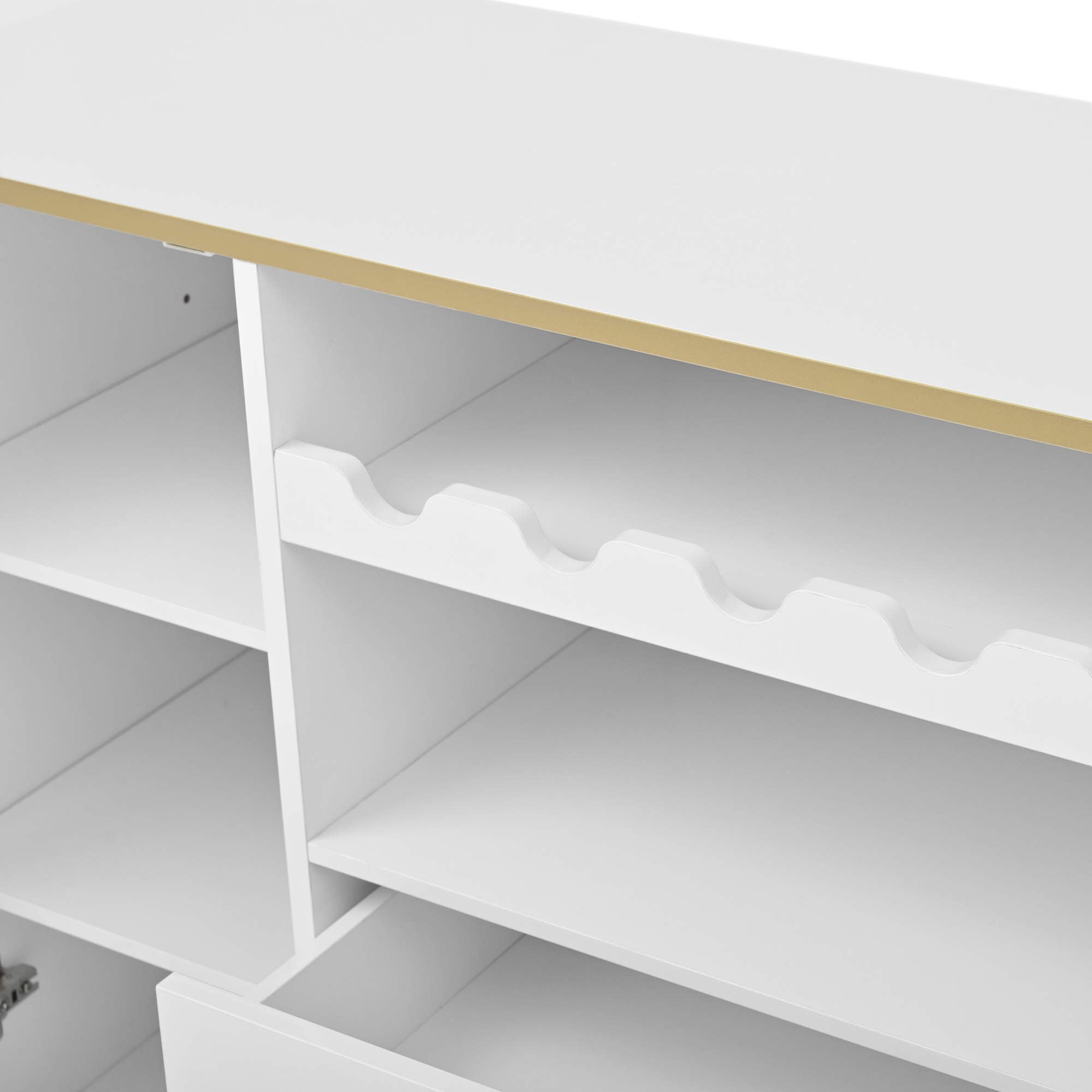 Білий комод зі скляними фасадами та полицею для вина – Комод для їдальні та вітальні – Регульована основа – Багато місця для зберігання та сучасний дизайн