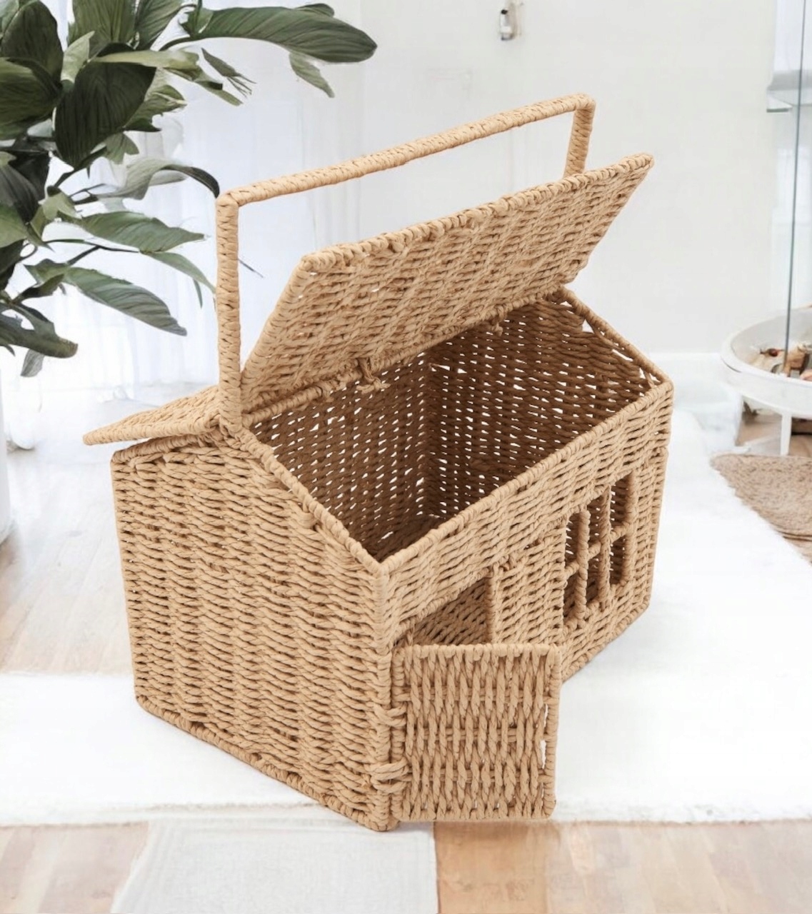 Будиночок має ручку, дверцята, що відкриваються з обох боків.