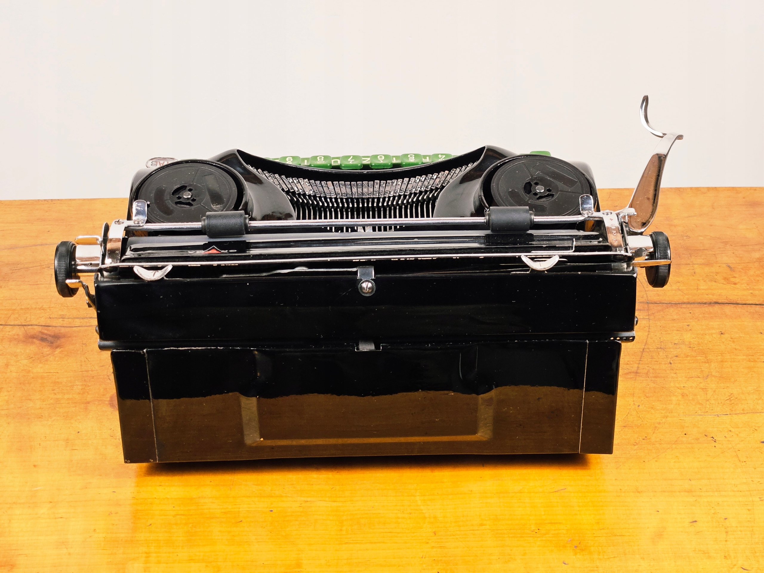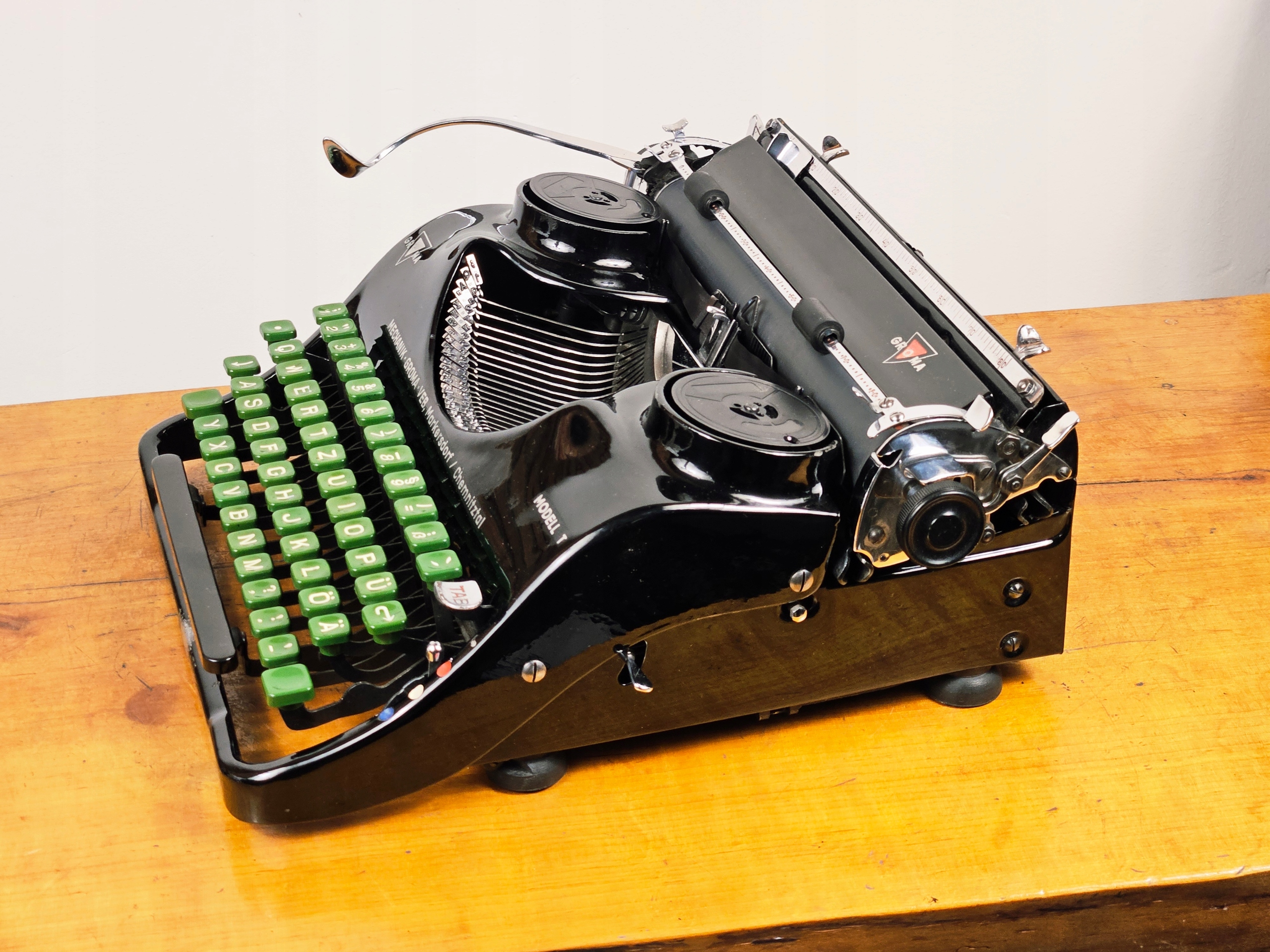 Спеціальний особливість: Насичений чорний лікер, нікельовані елементи та зелена клавіатура ідеально естетично гармонують у цій копії Groma T. Модель надзвичайно обтічної форми.