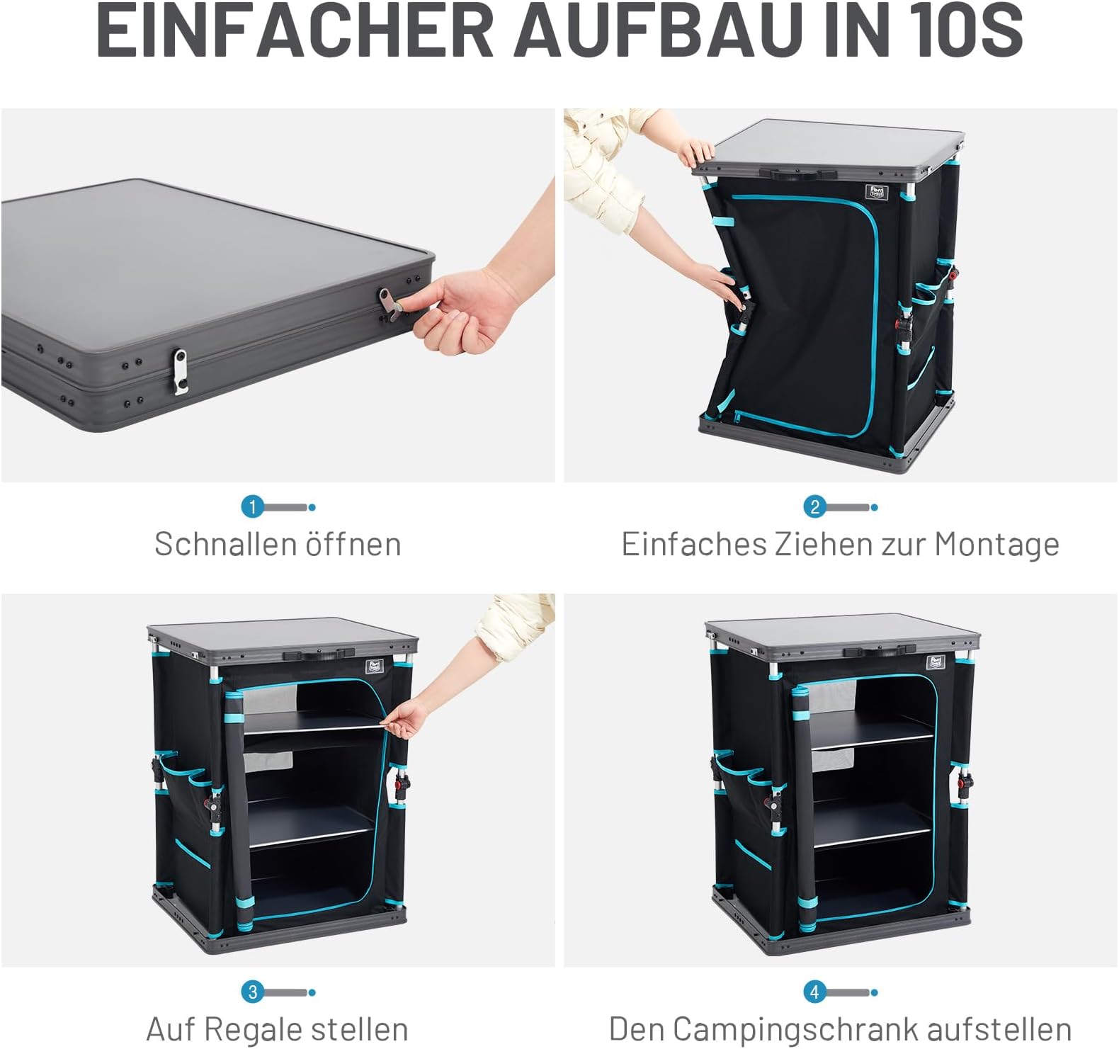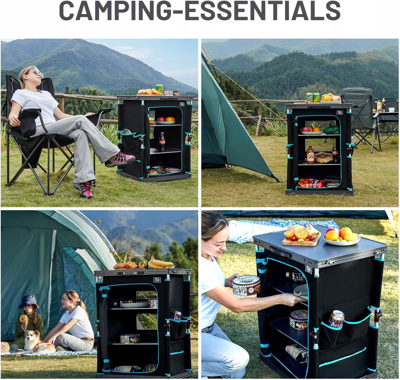 Працює не тільки під час кемпінгу - TIMBER RIDGE EU-AC-585 можна використовувати як допоміжну шафу в саду, на балконі, під час заходів на природі або навіть у гаражі. Компактний розмір у складеному вигляді означає, що він поміститься в будь-який багажник. Якщо ви шукаєте практичні та міцні вуличні меблі, ця модель стане відмінним вибором.