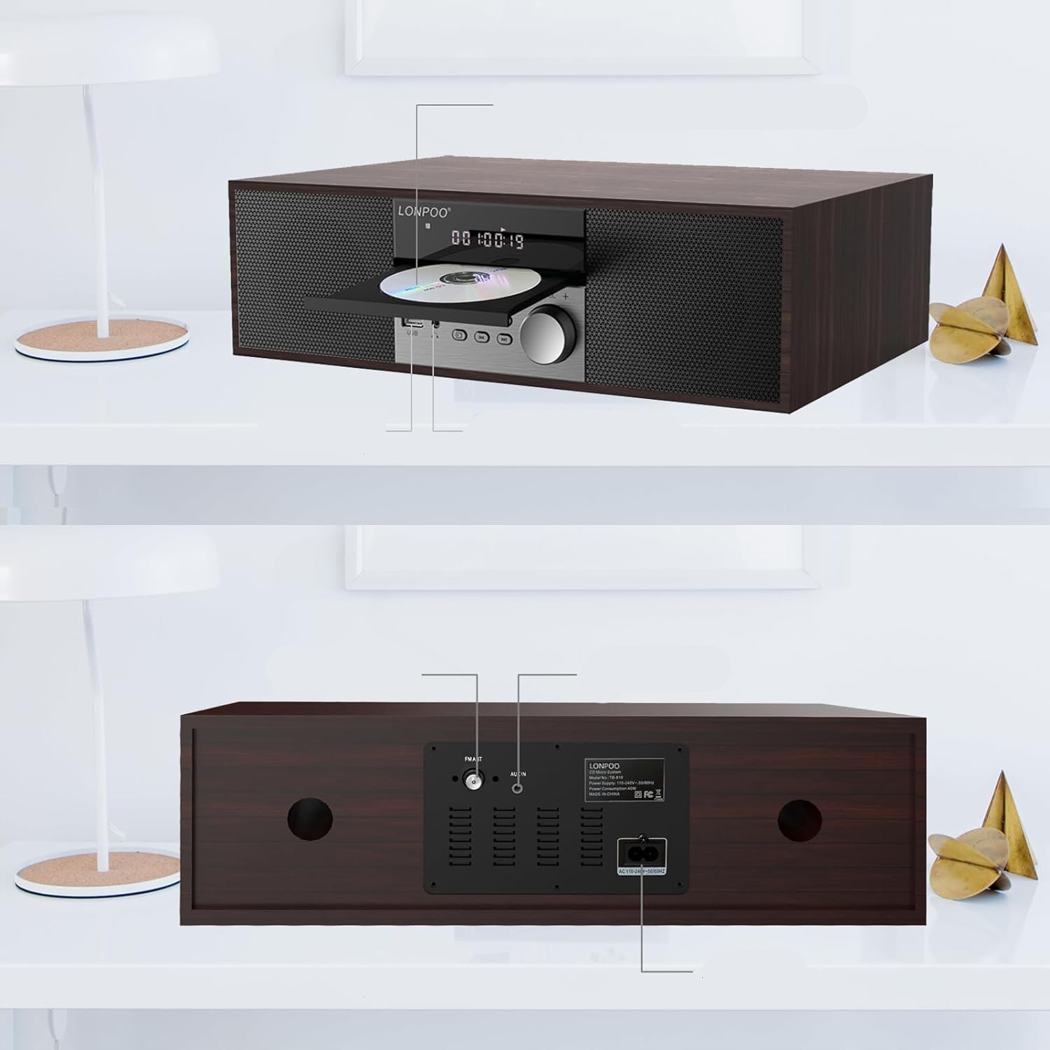 LONPOO Компактна домашня мікро HiFi стереосистема CD Bluetooth FM USB AUX