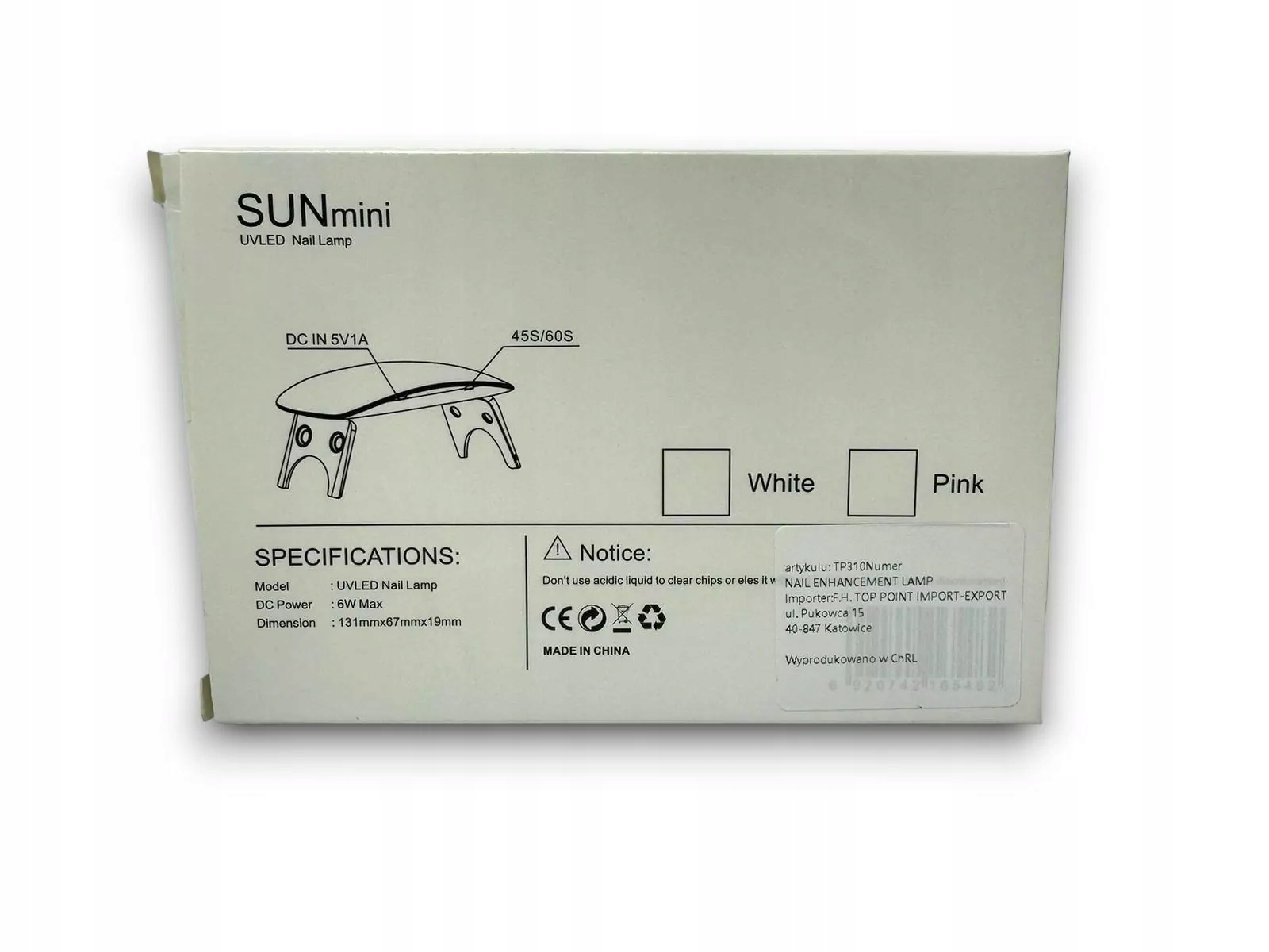 Ми представляємо компактну УФ/світлодіодну лампу для нігтів Sunmini, ідеально для використання вдома. Завдяки своєму портативному дизайну, ця лампа дозволяє швидко та ефективно загартовувати гібридні лаку та гелі.