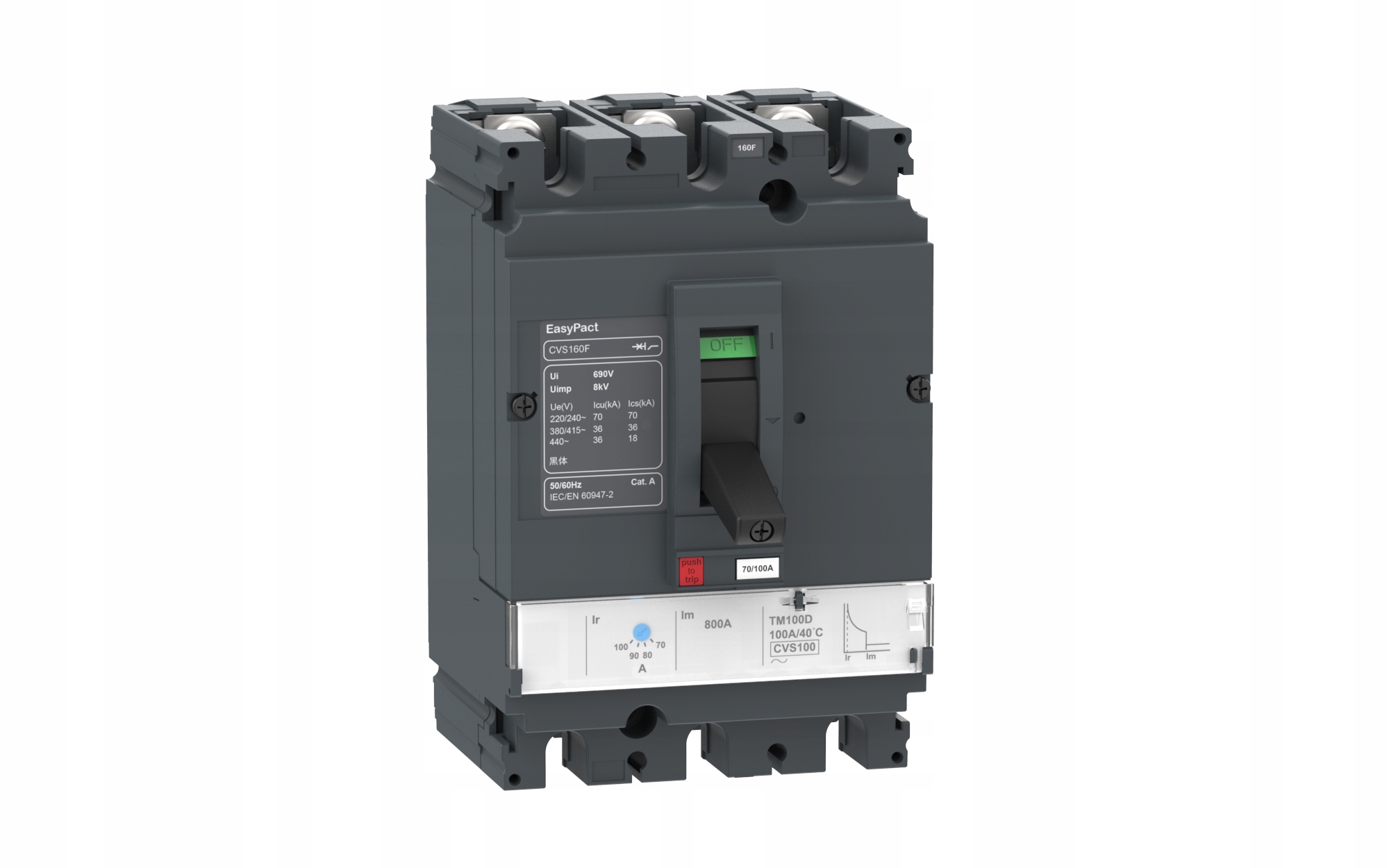 Компактний автоматичний вимикач CVS 36kA розчіплювач TMD160A 3P