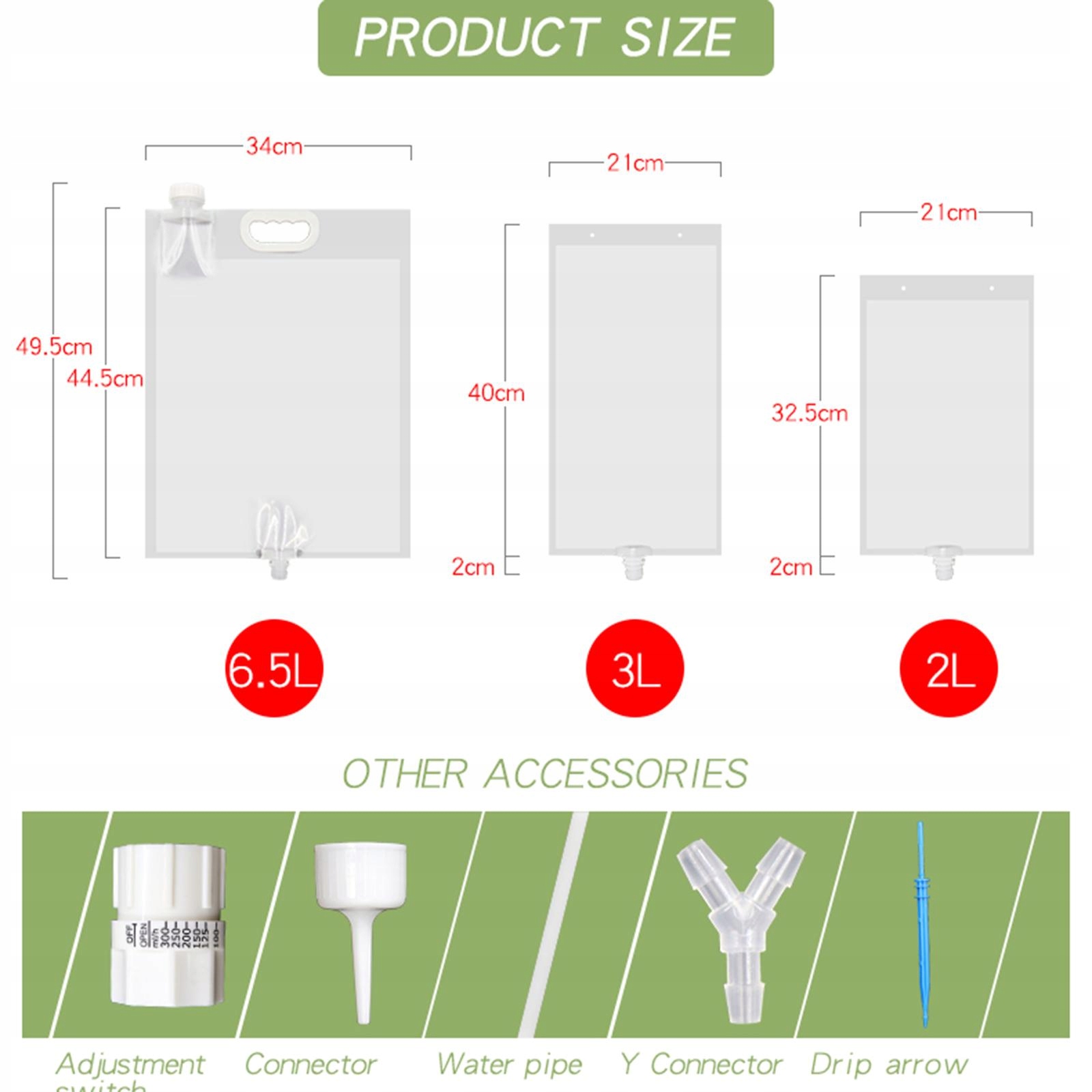 Простий у використанні: просто додайте воду в мішок для поливу, а система зробить все інше. Ви навіть можете додати рослинний розчин або водорозчинну формулу з повільним вивільненням. Кімнатним рослинам у маленьких горщиках вистачить води з повного мішка приблизно на тиждень.