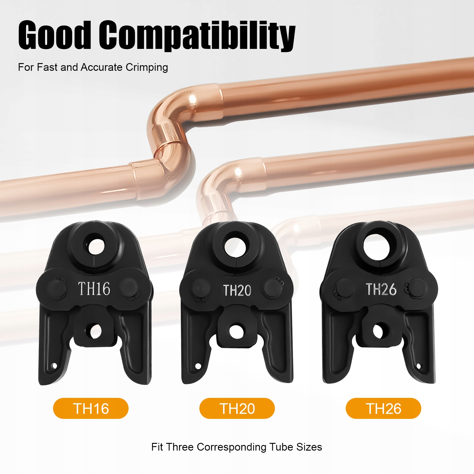 ✅✅Хороша сумісність:розміри губок TH16, TH20 і TH26 призначені для трьох відповідних розмірів трубок, забезпечуючи швидке й точне обтискання. Конструкція хвостового контуру може досягти гарної сумісності з інструментами, що робить його придатним для більшості обтискних інструментів.