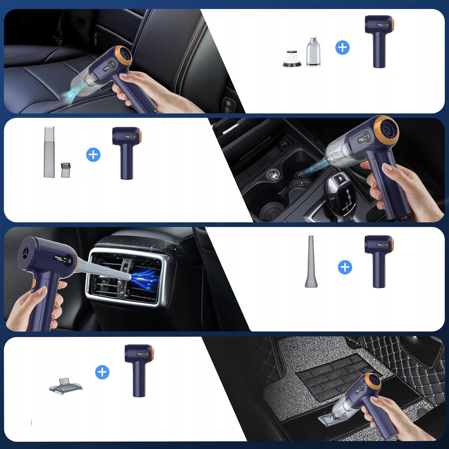 - ☑️Автомобільний пилосос постачається з 4 різні типи насадок, видування пилу, пилосос, відкачування та пилосос, 4 в 1. Легко вирішувати всілякі життєві проблеми.