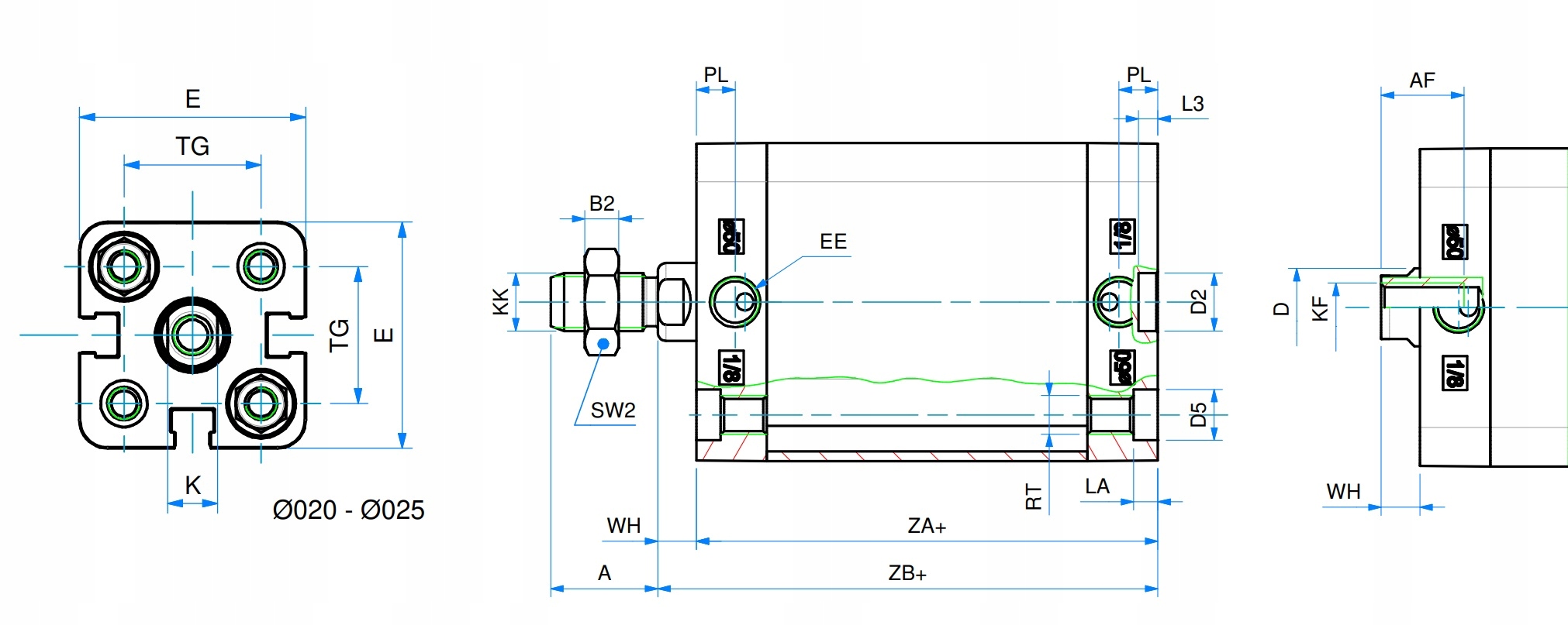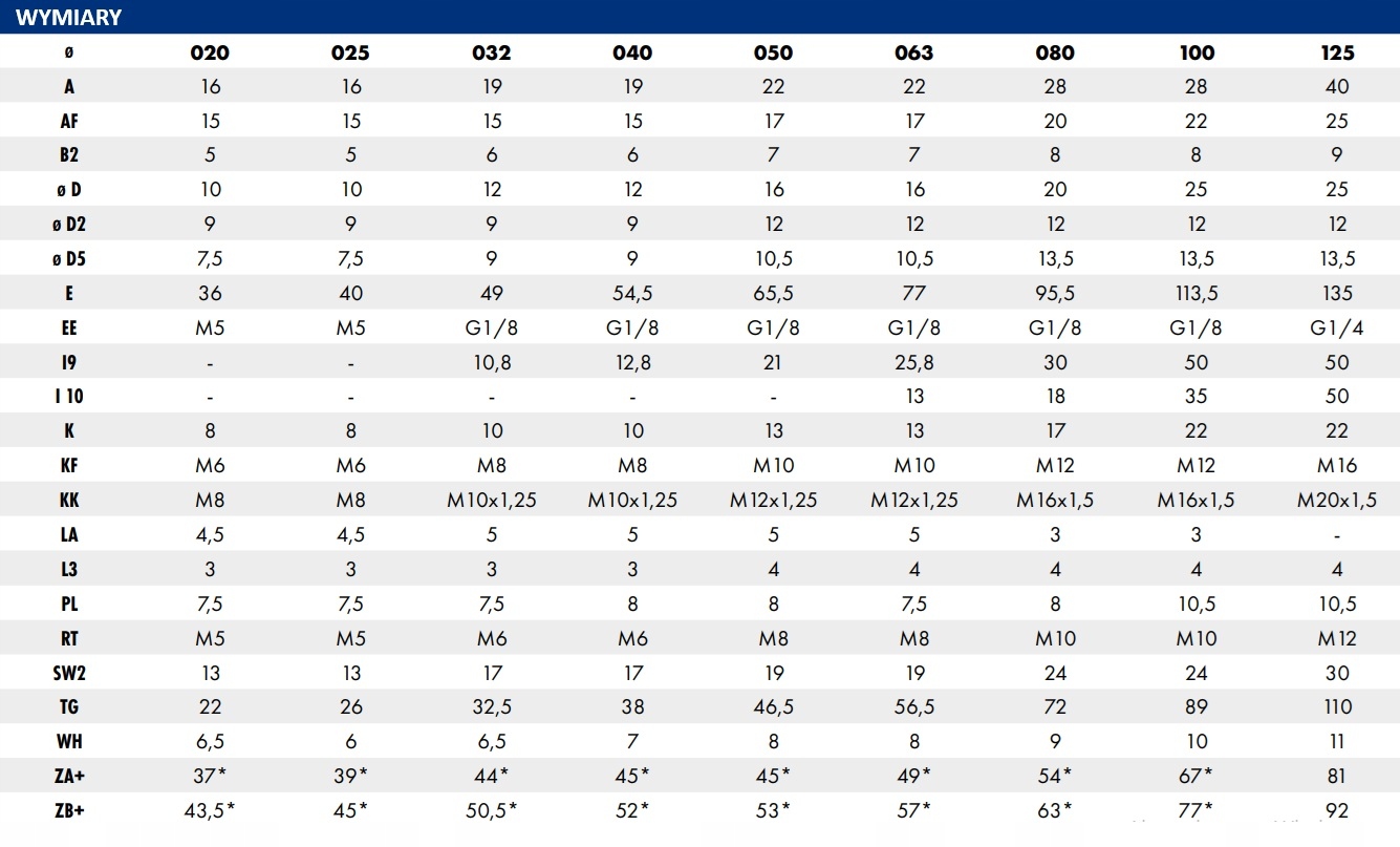 Найпопулярніший тип компактних приводів, що використовуються на ринку, діаметром від 20 мм до 125 мм. Стандартно наші приводи мають поршневий шток із хромованої сталі С45, магнітне кільце та можливість встановлення контрактного датчика (Т-подібний паз). Корпус виготовлений з алюмінієвого лиття під високим тиском, а стандартні ущільнення виготовлені з високоякісного поліуретану, стійкого до механічних пошкоджень.