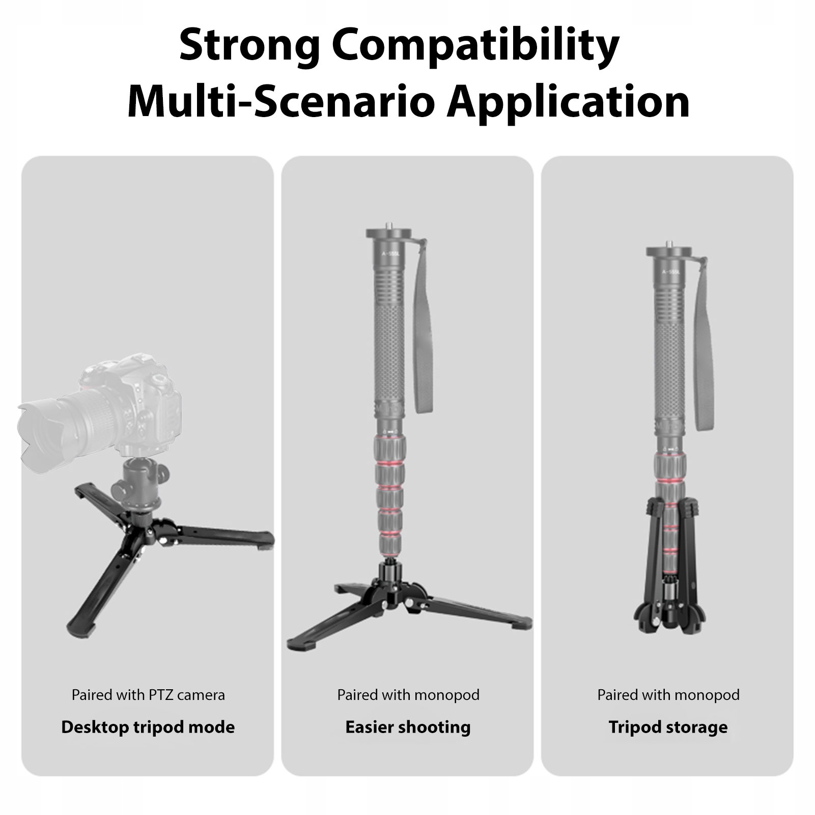 1. Широка сумісність: У випадку з 3/8 дюймів болтів цей невеликий штатив сумісний з різними фотографічними пристроями, такими як одна нога, штатив з кульовою головкою, моноподом гідравлічної головки та ін. решта фотографії.