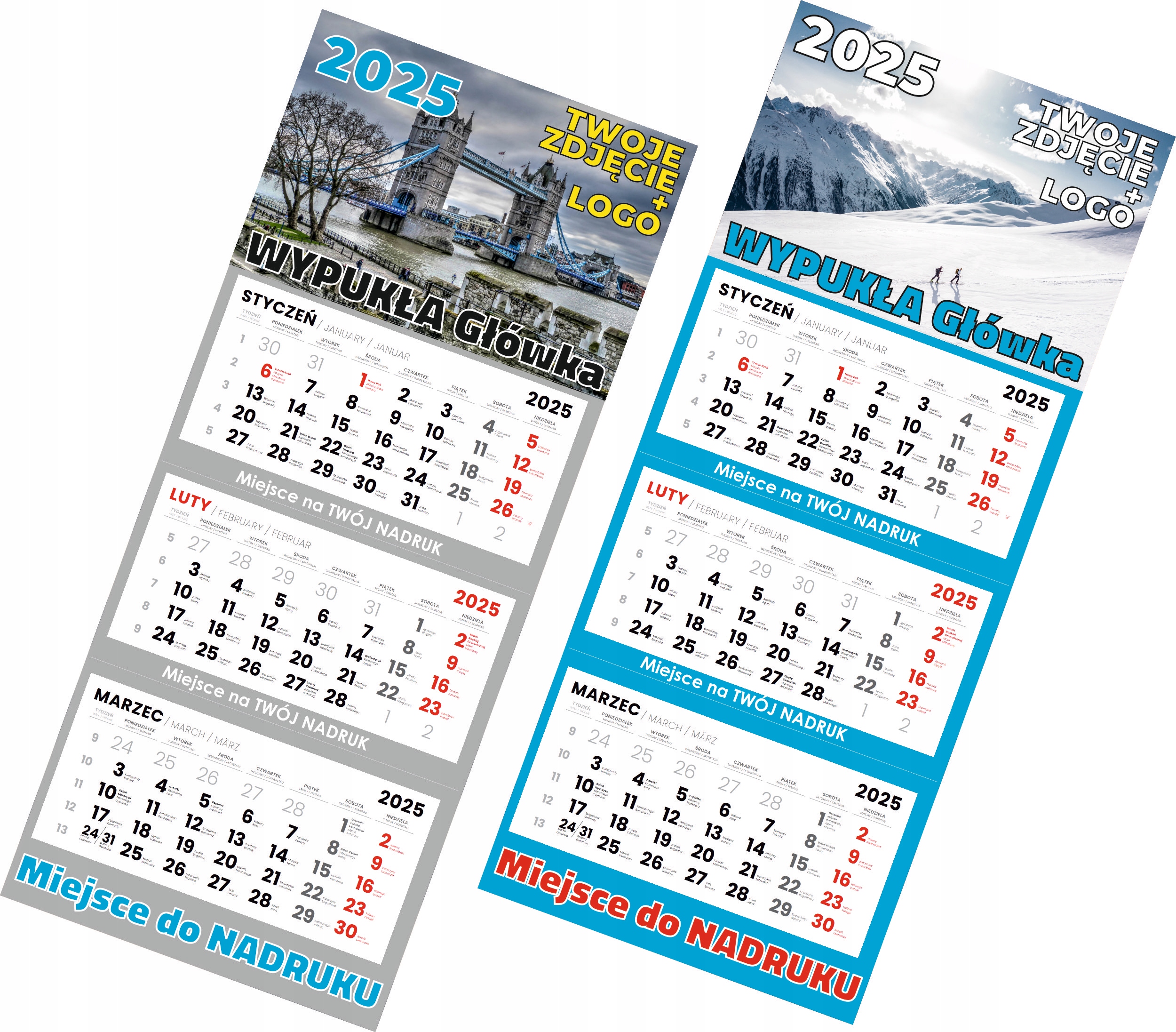 Календар із трьох частин "BIG" (версія з опуклою голівкою на цьому аукціоні) надруковано на картоні 300 г і містить віконце для позначення дати. Це ідеальна пропозиція для тих, кому потрібні солідні і красиві, але дешеві календарі. Календар має 3 окремі календарі (на поточний, попередній і наступний місяць), прикріплені на звороті.
