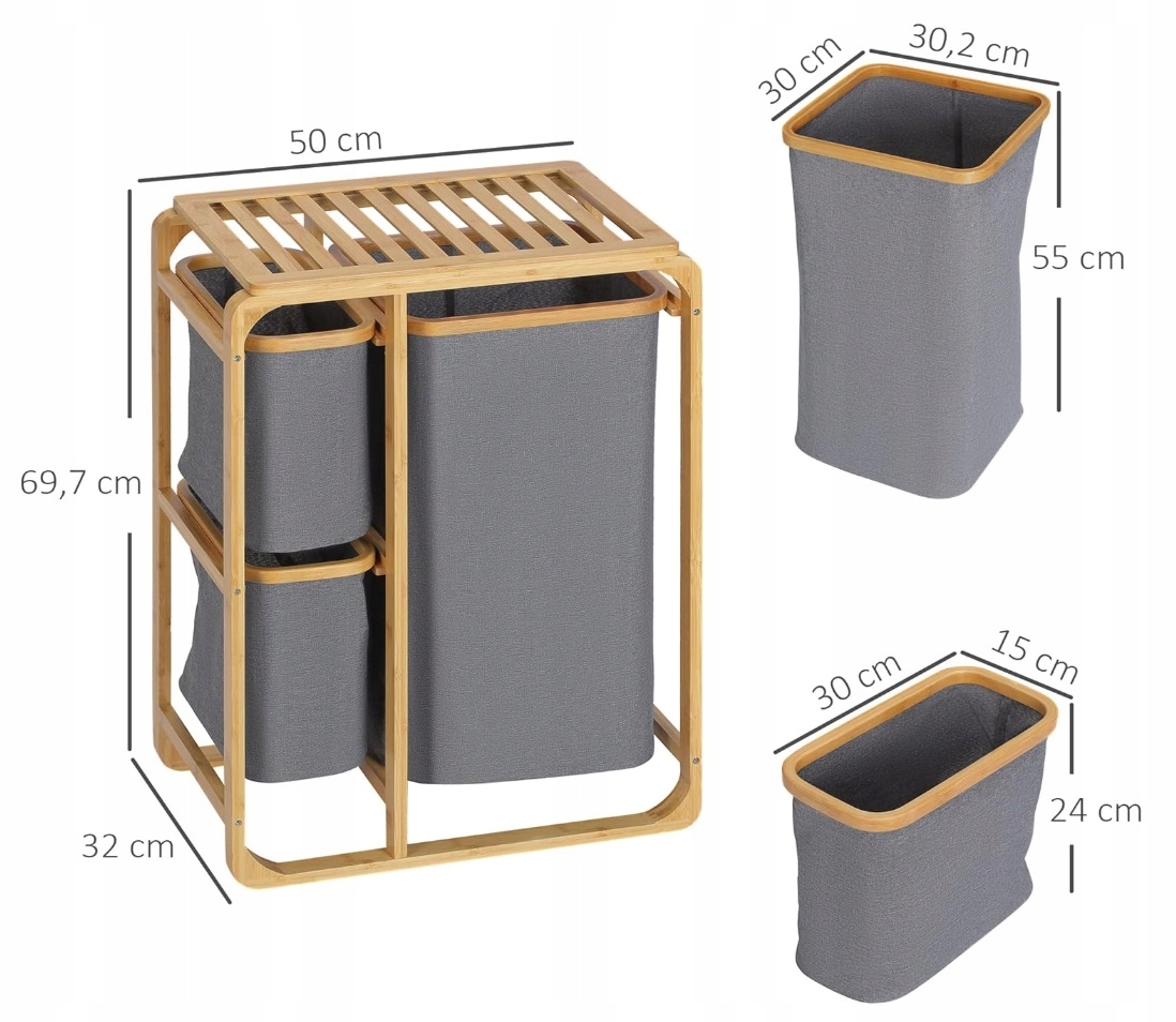 Компанія Homcom Bamboo Praindry з платформою + 3 знімні кошики 70x50x32 см