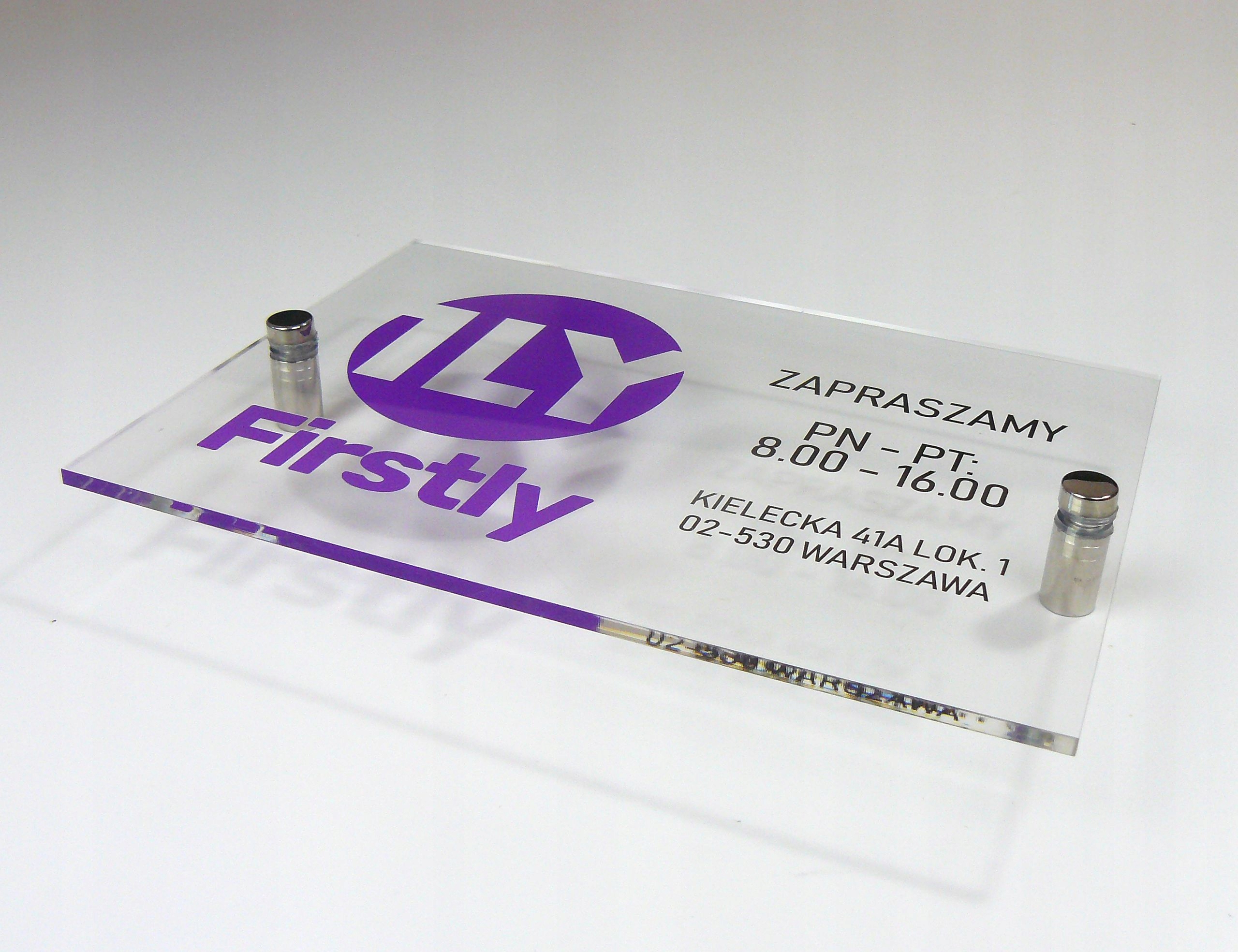 Пластина компанії виготовлена з інноваційним методом УФ -друку на високій якості прозорий оргскло з товщиною 4 мм . Пластина має отвори і оснащена двома відстанями, які полегшують її кріплення. Весь створює дуже елегантну композицію.