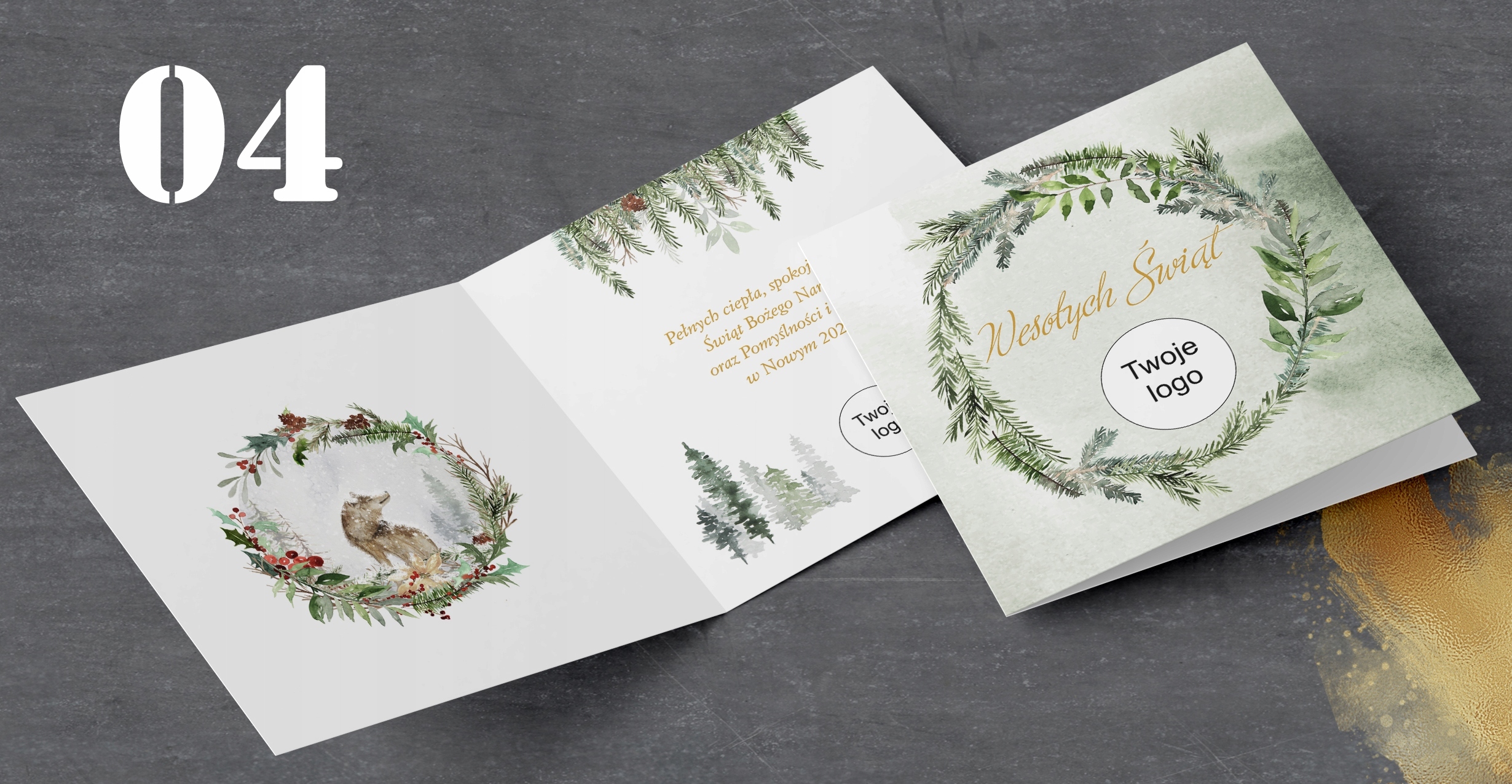 Складені різдвяні листівки з логотипом вашої компанії надруковані на перламутровому папері 250 г , кольору : кістки ілюгори). Яскраві кольори. цифровий друк на професійній виробничій машині xerox. /Складено половиною/машина.