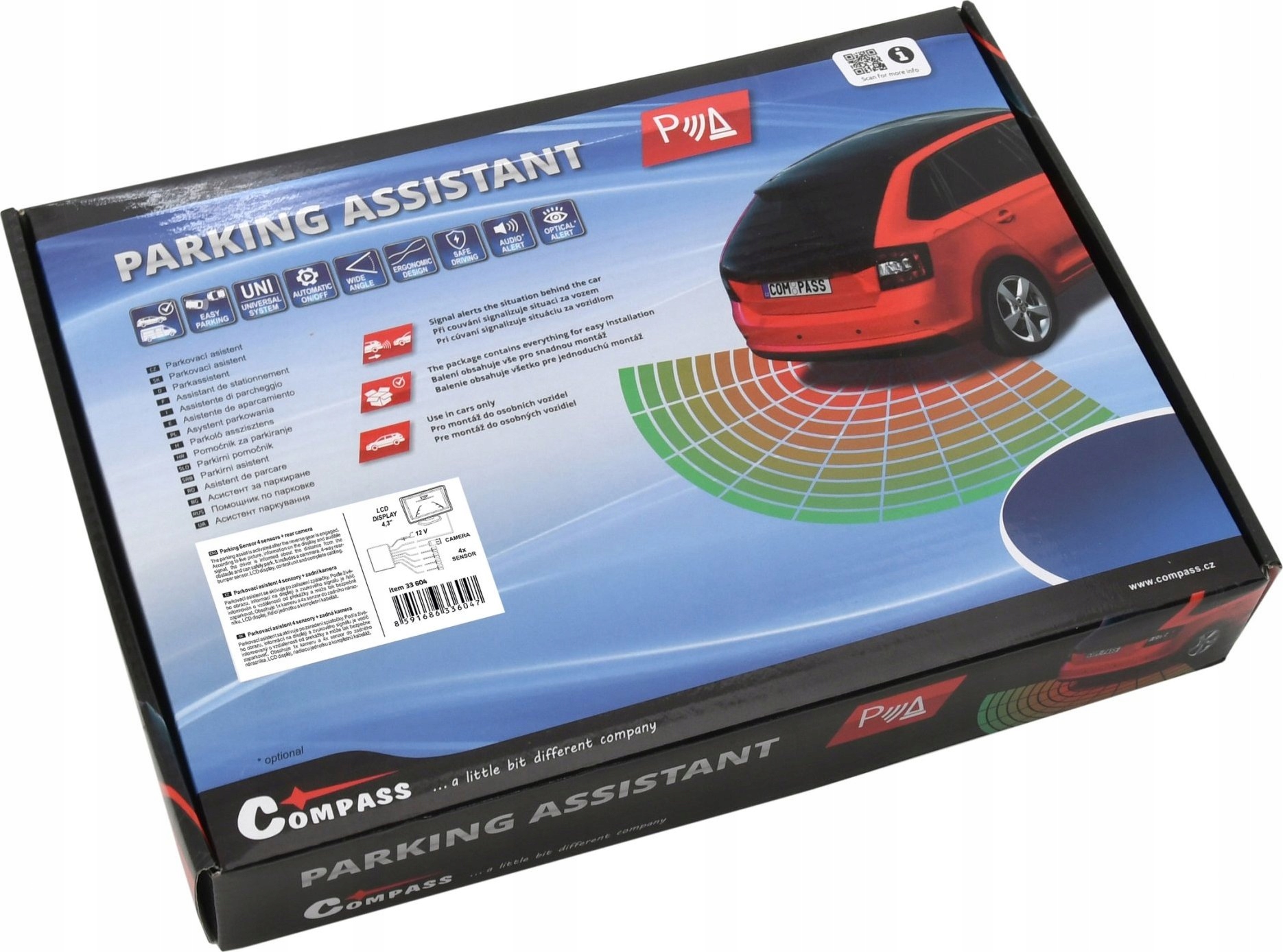 4,3-дюймовий РК-дисплей (NTSC/PAL) живиться від блоку управління системою паркування. Перегляд зображення має роздільну здатність 800 x 480 пікселів із співвідношенням сторін 16:9. Зображення доповнюється необхідними індикаторами та інформацією про відстань до перешкод.