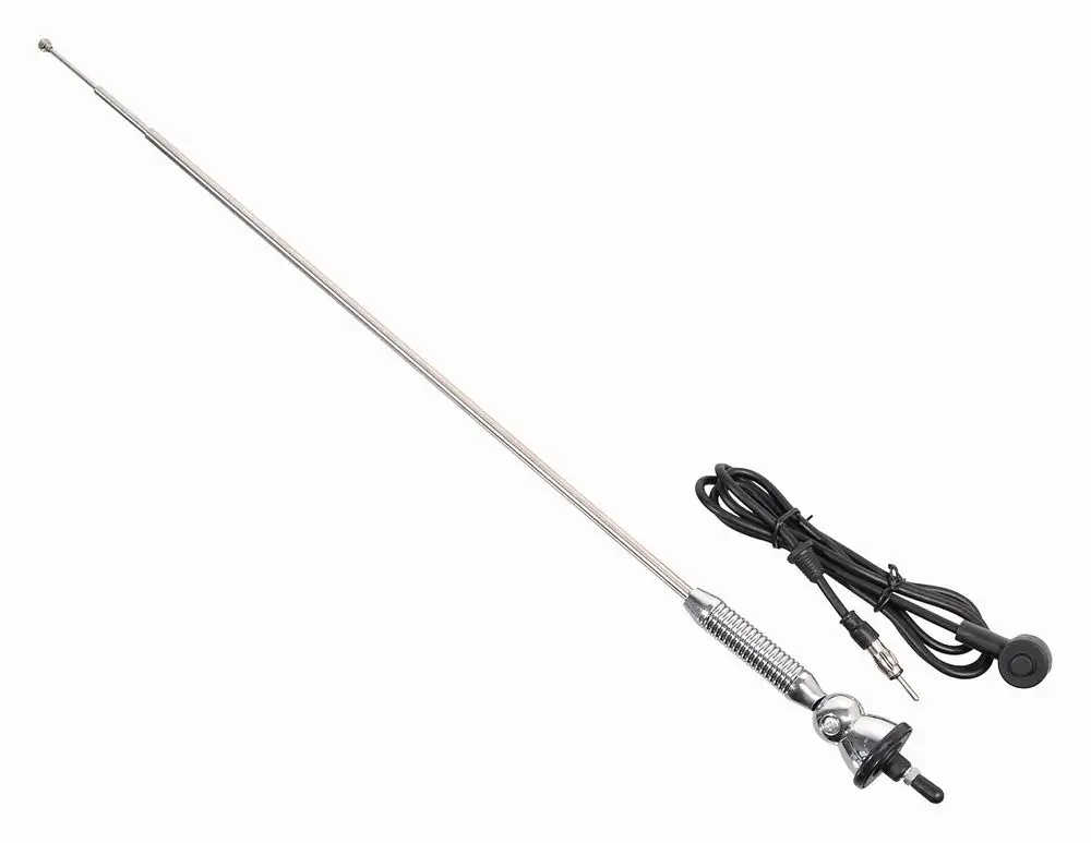 Телескопічна автомобільна антена для прийому радіосигналу в автомобілі, що складається з телескопічної гвинтової штанги, монтажної розетки з роз'ємом і кабелю живлення. Ця антена підходить як для крила, так і для монтажу на даху.