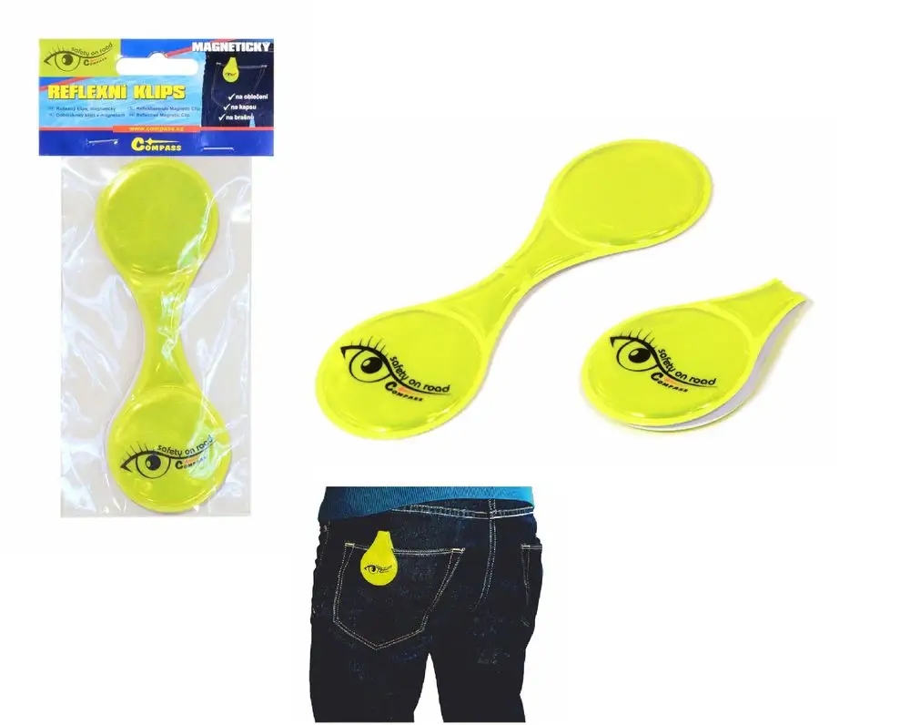 Магнітна світловідбиваюча кліпса, яку легко закріпити в кишені, на одязі тощо. Сучасний, кумедний і, головне, легко помітний аксесуар, який також підходить для дітей.