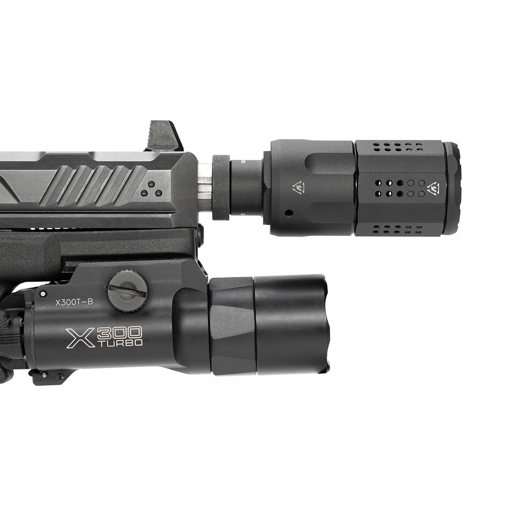Технічні дані Калібр9 мм Thread1/2x28 Мінімальна довжина бочки113 мм MaterialInum 6061 -T6 Довжина 93 мм Ширина28 мм Висота28 мм Waga53 g Барвистий