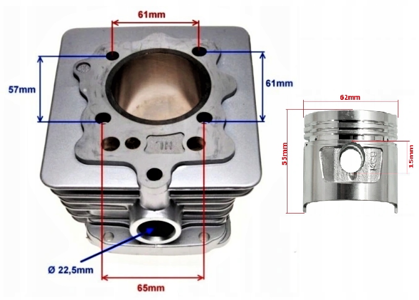 КОМПЛ. Циліндр поршень 62 мм Quad Barossa SMC 150/170CC