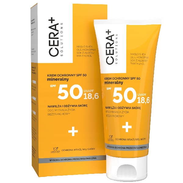 Мінеральний захисний крем CERA+ SPF 50 призначений для захисту чутливої, атопічної шкіри та шкіри, схильної до алергії на сонце або хімічні фільтри, від шкідливого впливу сонячного світла. Його можна застосовувати немовлятам, дітям і дорослим. Також підходить для дітей віком від 1 місяця - якщо необхідний захист від прямих або непрямих сонячних променів.