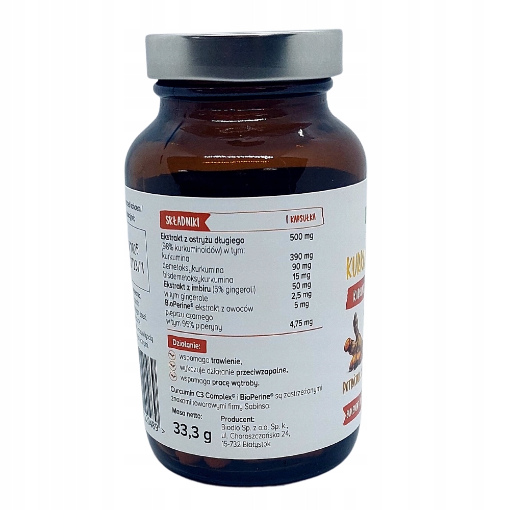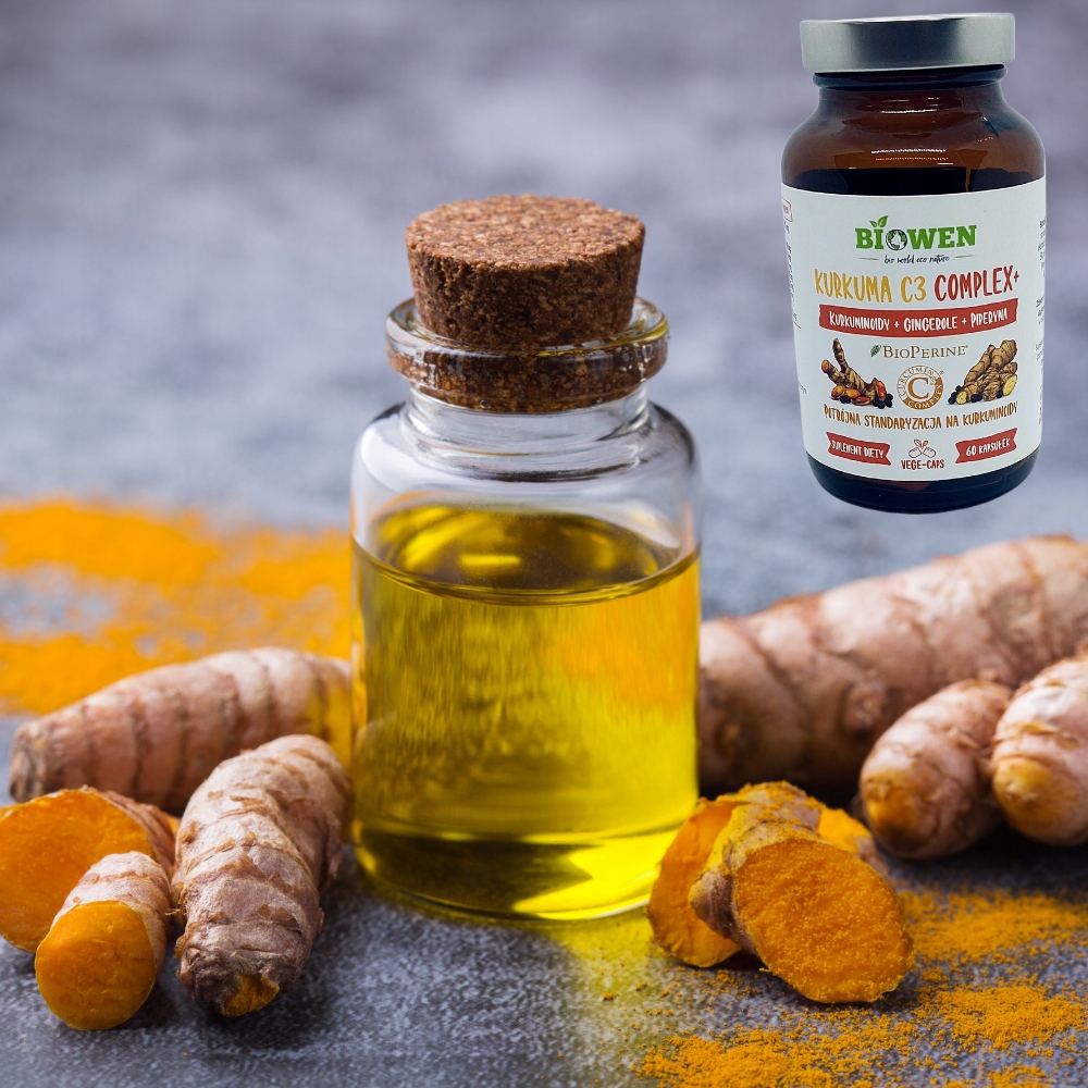 - demetoxicumina. Він збагачений екстрактом імбиром, стандартизованим на дискул та плід чорного перцю Bioperine®, як стандартизований на піперині. Завдяки цьому цей продукт пропонує надзвичайну силу природних інгредієнтів. Куркума C3 Complex+ BioWen - це не лише безліч рослинних інгредієнтів з багатьма цінними властивостями, але й куркуміноїдним комплексом, отриманим з кореня куркуми. Завдяки цьому продукту ви можете виявити потенціал природних речовин, що підтримують травну систему, забезпечують антизапальний та антиоксидантний ефект і позитивно впливають на печінку, кістки, дихальну систему та багато інших функцій тіла. 4