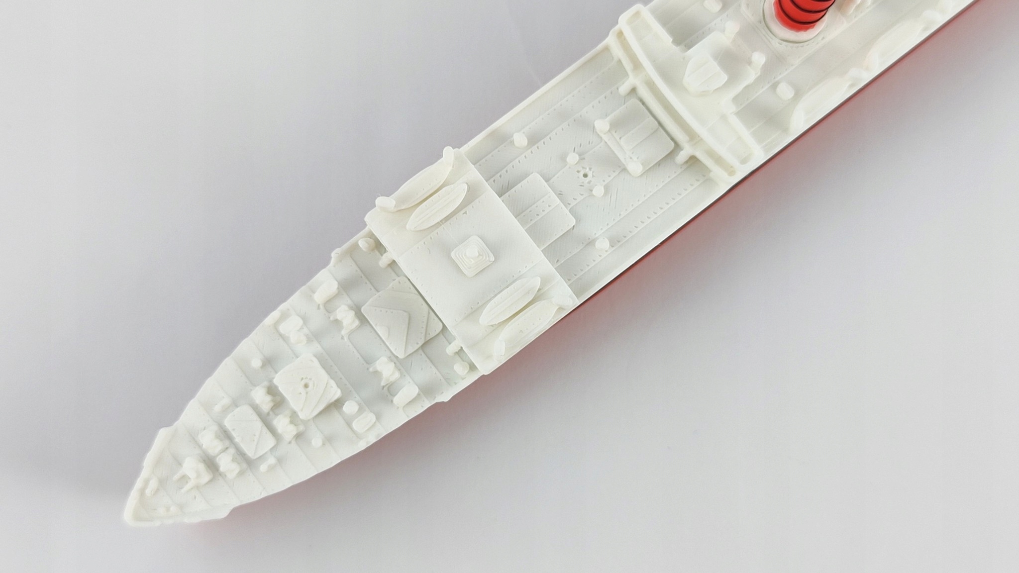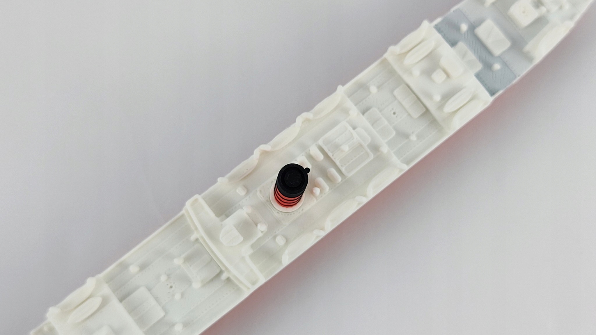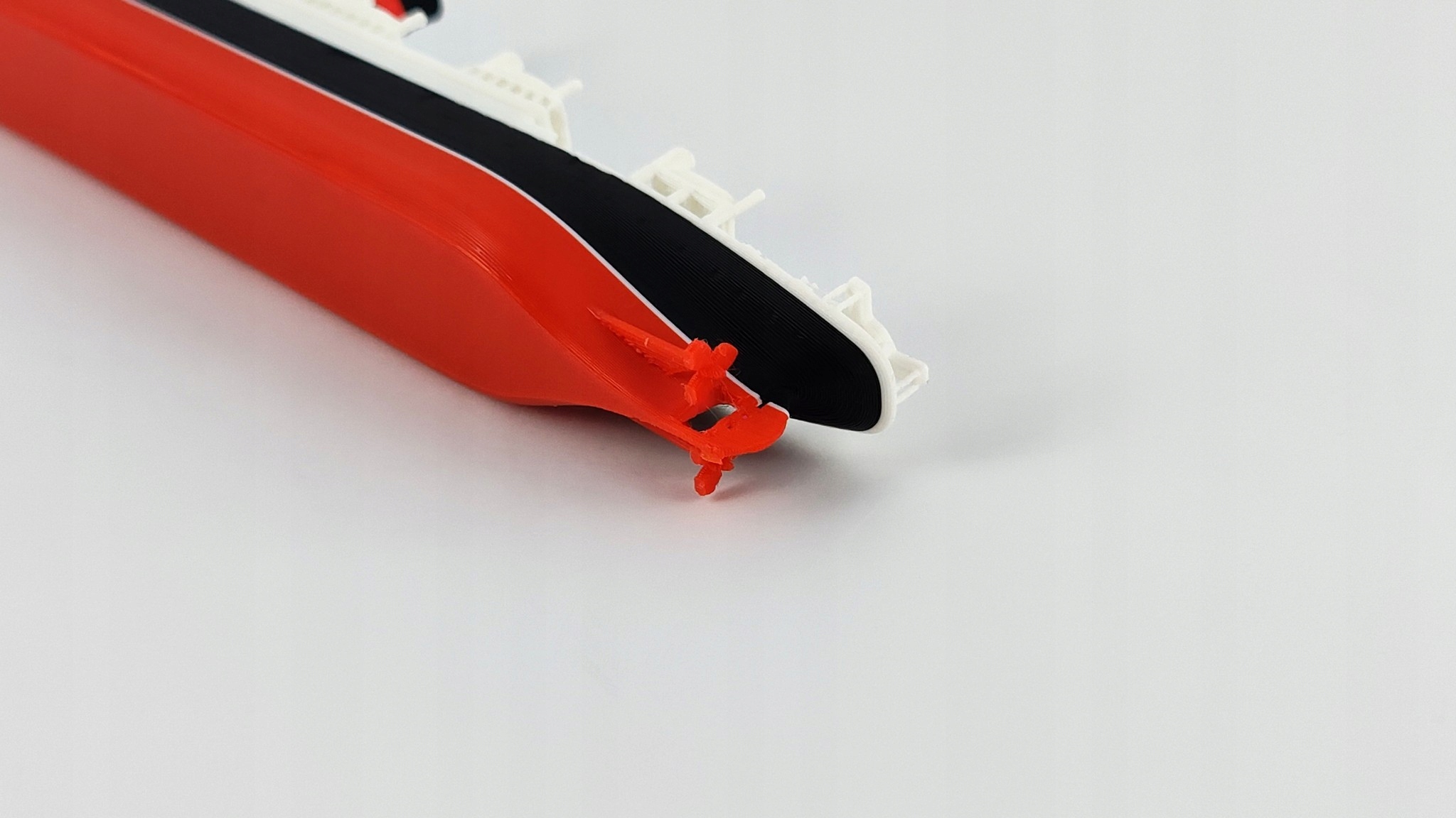 Модель не призначена для плавання - вона не має баласту і легко падає. Однак матеріал PLA стійкий до короткочасного контакту з водою, що ідеально підходить для гри під наглядом. Не залишайте модель у воді надовго - після контакту з водою ретельно висушіть її.