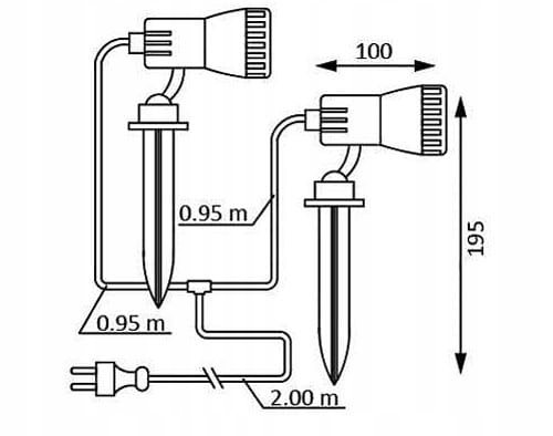 - У набір входять два світильники, які можна розмістити на відстані приблизно 2 м один від одного (ви можете обрізати кабелі, щоб подовжити їх)