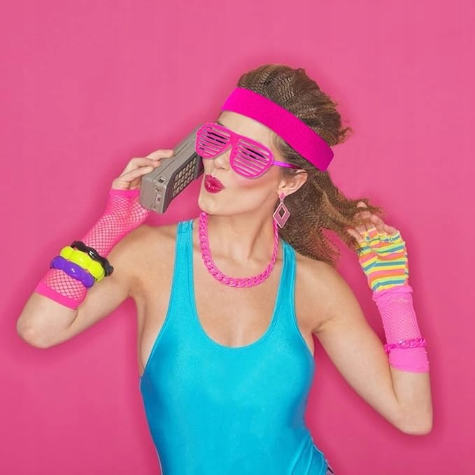 Безперечно привертає увагу: окуляри, що привертають увагу, яскраві панчохи та рукавички в сіточку, барвисті сережки, неонова пов'язка, ідеальне ретро в стилі 80-х! ! І це може заощадити вам багато часу. Крім того, ви можете
