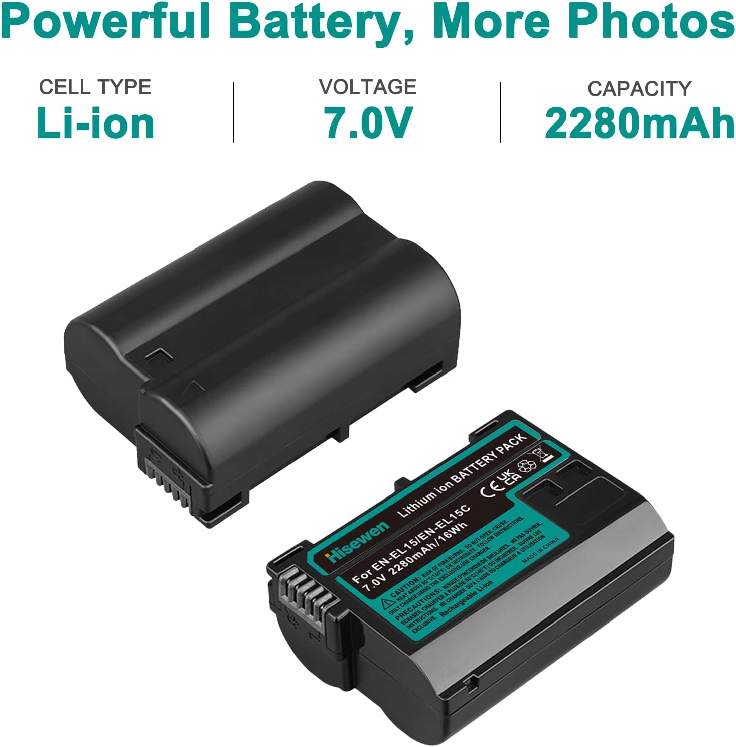 - 【Потужна батарея】 2 запасні батареї, велика ємність 2280 мАг, 7,0 В, 16 Вт-год літієві елементи Іонні батареї забезпечують довший час роботи життя без ефекту пам'яті.
