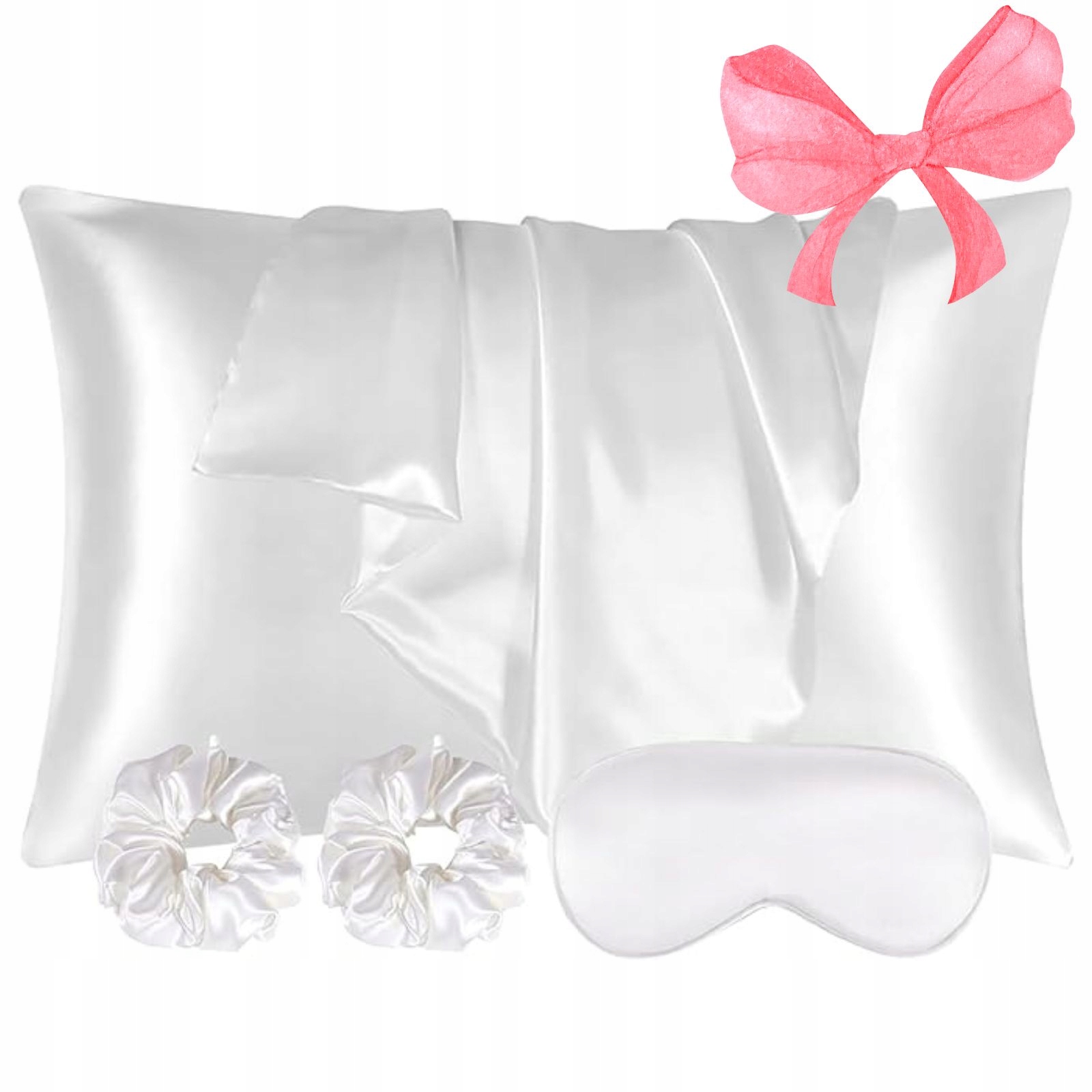 Елегантний подарунковий набір: 2 атласні наволочки 40х80 см + маска для очей + 2 резинки для волосся.