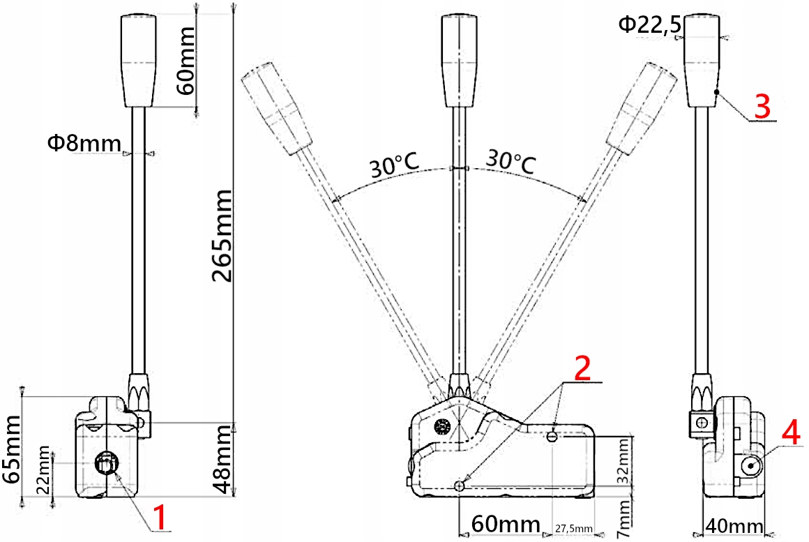 - Кінець кабелю з боку джойстика закінчується вилкою з отвором 6 мм і корпусом 14 мм