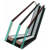 - Складається з трьох загартованих стекол товщиною 4 мм. Зовнішні стекла виготовлені з низькоемісійного скла. Обидва простори між стеклами мають 10 мм і заповнені благородним газом - криптоном. Супер енергозберігаючий подвійний склопакет використовує теплу прокладку TGI з пластику.