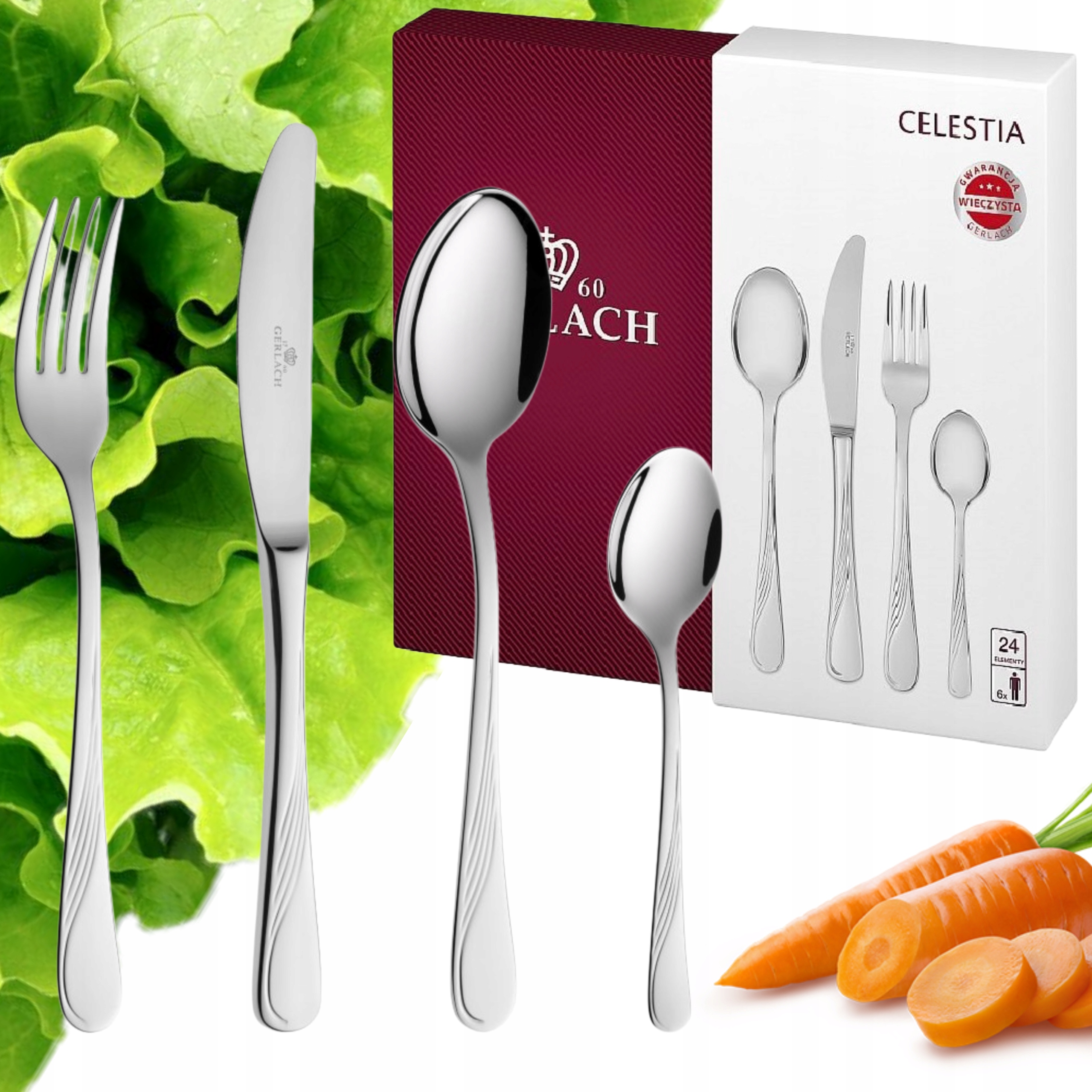 КОМПЛЕКТ 24 СТОЛОВИХ ПРИЛАДІВ ГЛЯНЕЦЬ 6 ОСІБ НАБІР СТОЛОВИХ ПРИЛАДІВ КОРОБКА GERLACH CELESTIA