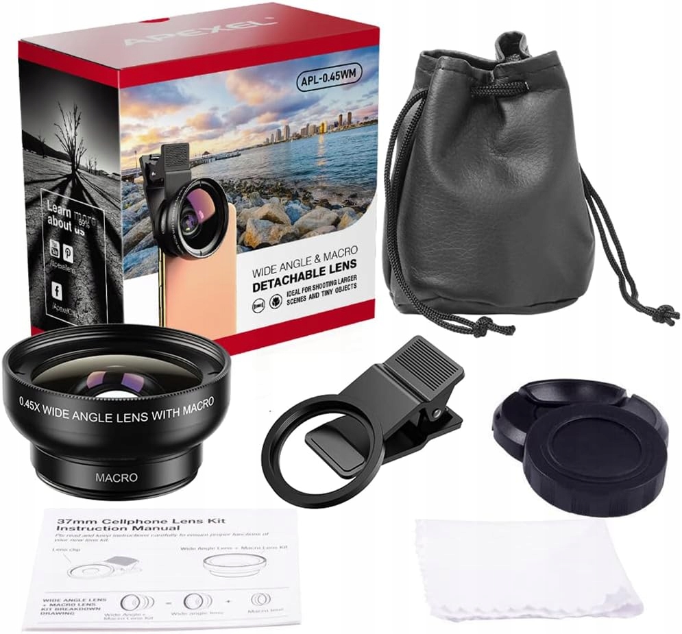 Професійний об’єктив 2 в 1 APEXEL із серії APL-0.45WM складається з двох універсальних об’єктивів, ідеально підходить для зйомки та фотографії.