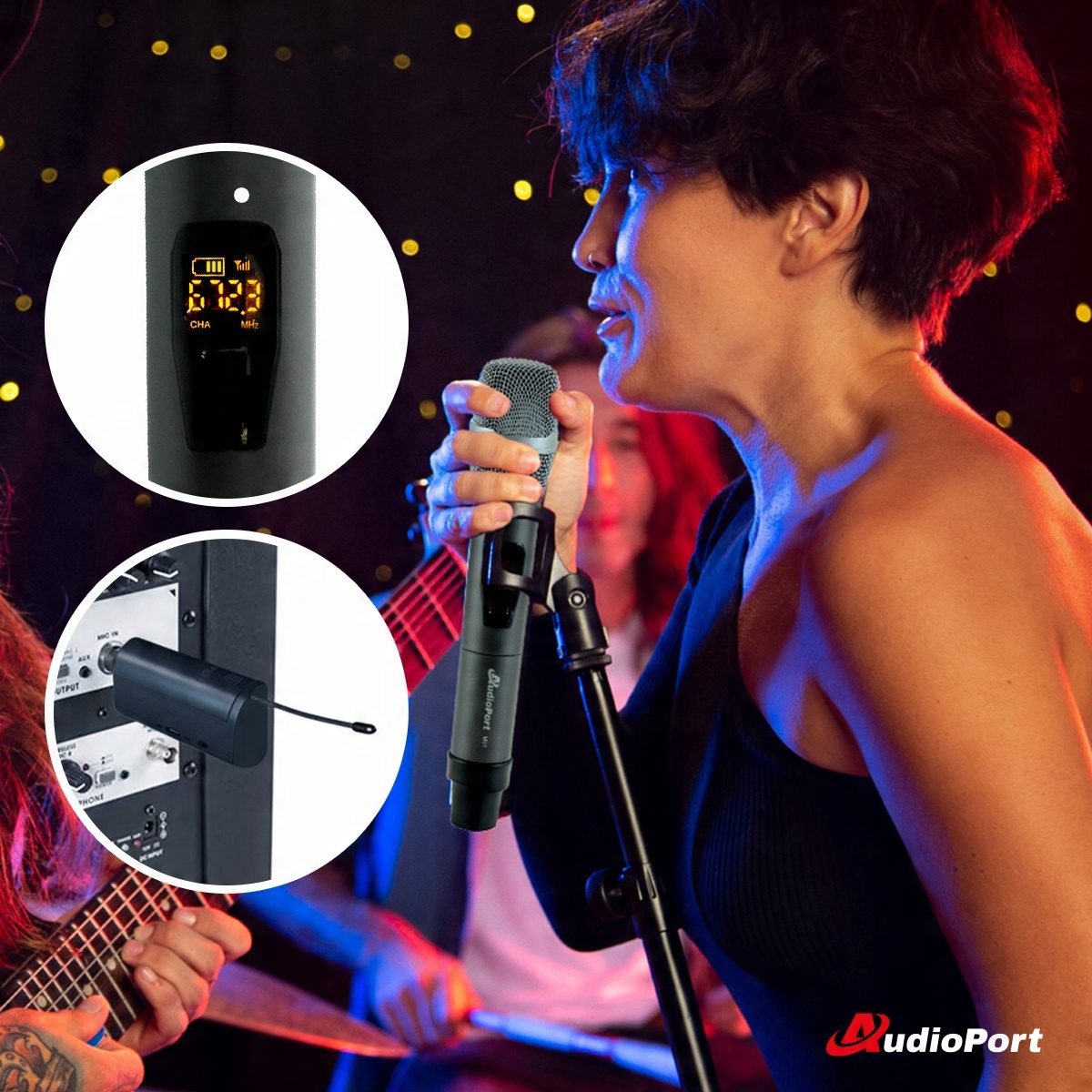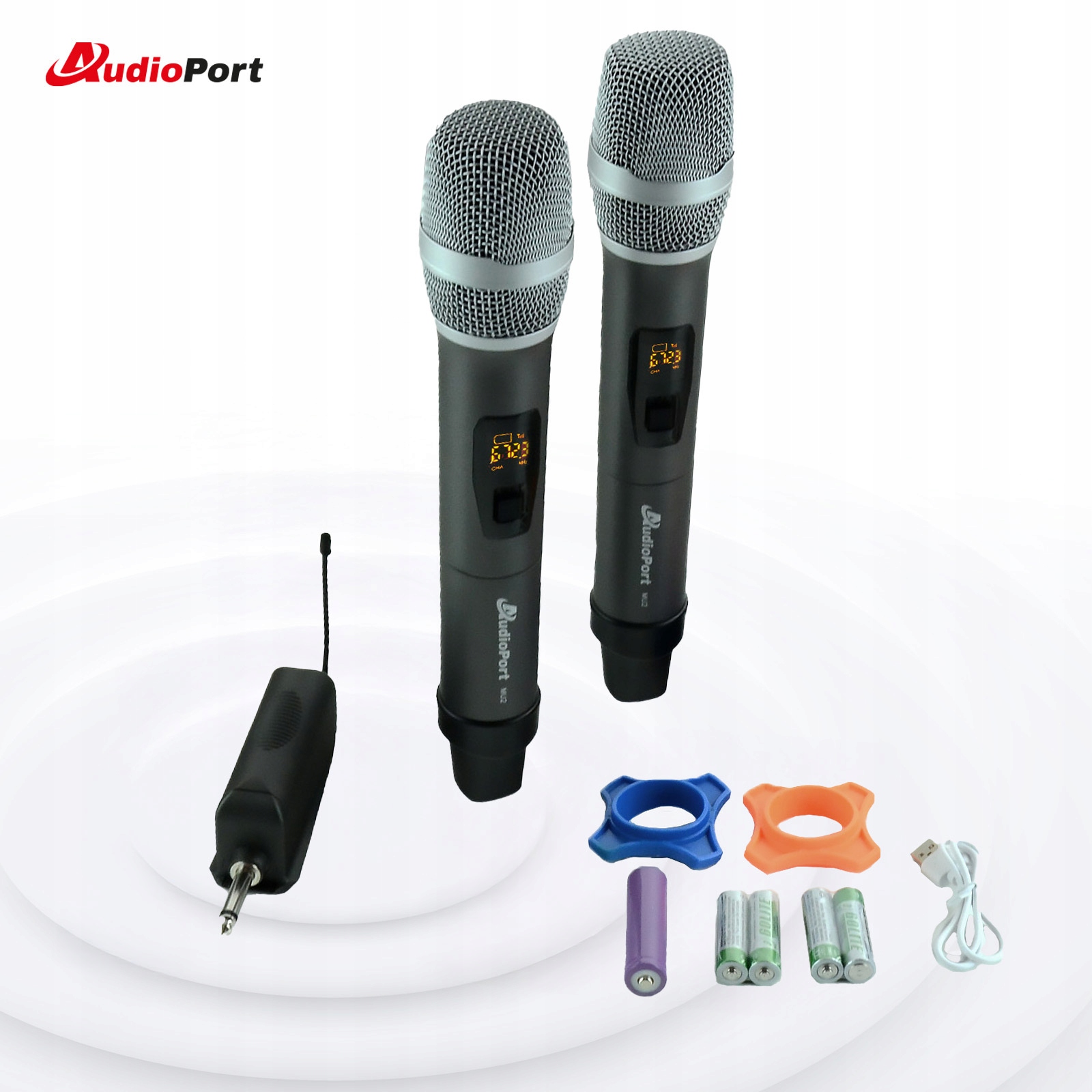 Встановіть 2x бездротовий приймач Dora UHF+ з акумулятором Audioport