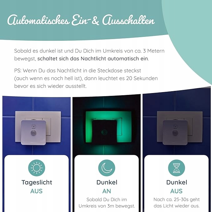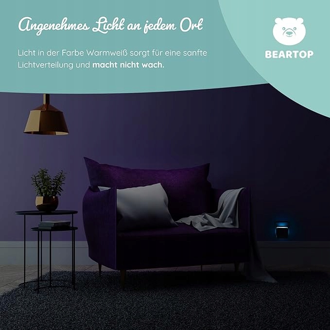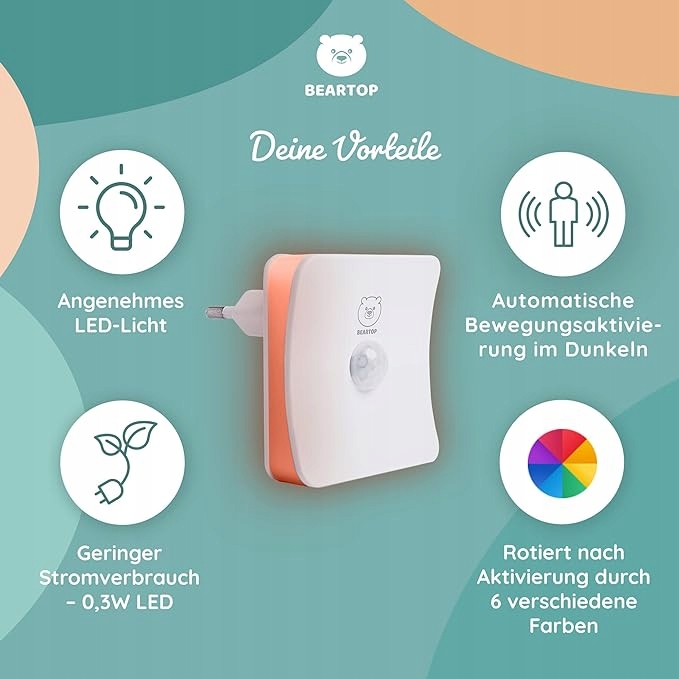 Нічник преміум-класу Beartop, з датчиком сутінків і руху, різні кольори, автоматичне ввімкнення/вимкнення, орієнтаційне освітлення, освітлення...