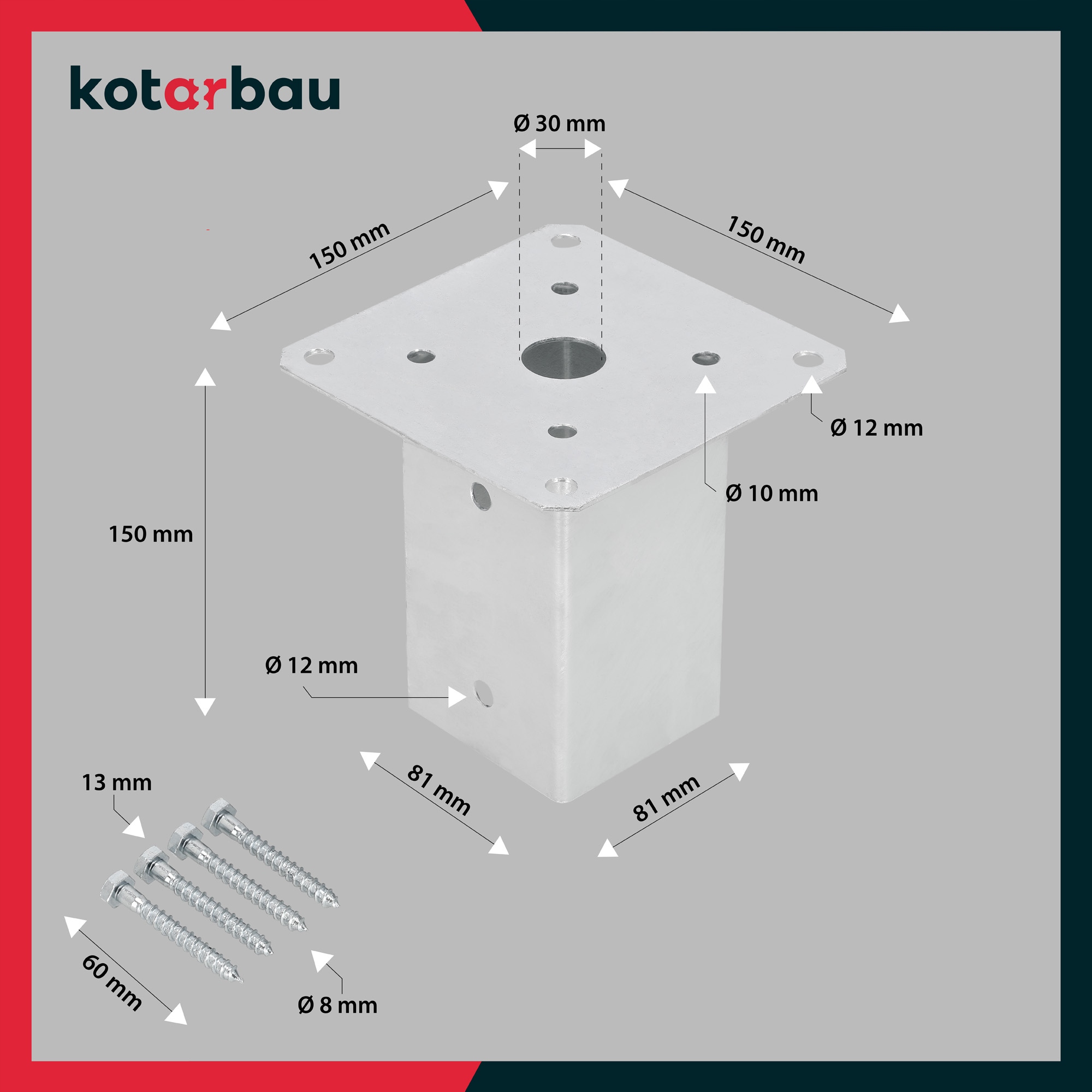 ZESTAW 2x PODSTAWA STOPKA SŁUPA PRZYKRĘCANA 80X80 mm WSPORNIK KOTWA STALOWA