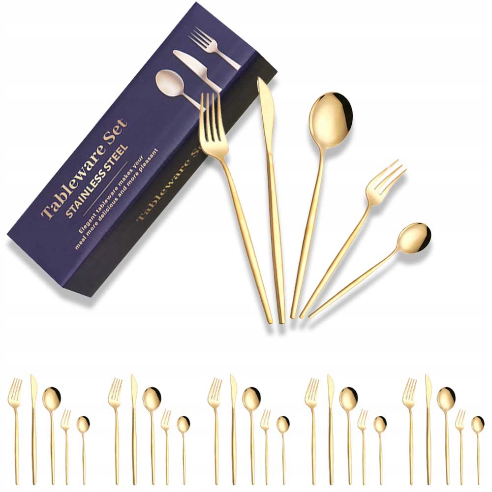 КОМПЛЕКТ 30 ЗОЛОТІ СТОЛОВІ ПРИЛАДИ НАБІР СТОЛОВИХ ПРИЛАДІВ 6 ОСІБ НЕРЖАВІЮЧА СТАЛЬ ГЛЯНЕЦЬ