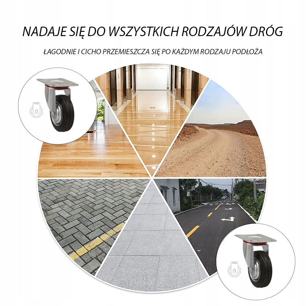 - КОЛЕСО складається із сталевої втулки та немаркої гумової шини, має голчастий підшипник. Колеса мають міцність 150 кг на колесо. Вони повільно зношуються, стійкі до пошкоджень, поглинають удари та вібрацію. Вони обертаються на 360 градусів, полегшуючи маневрування меблями або коляскою. Вони плавно обертаються на твердих і гладких поверхнях, як-от бетон, з дуже невеликим тертям.