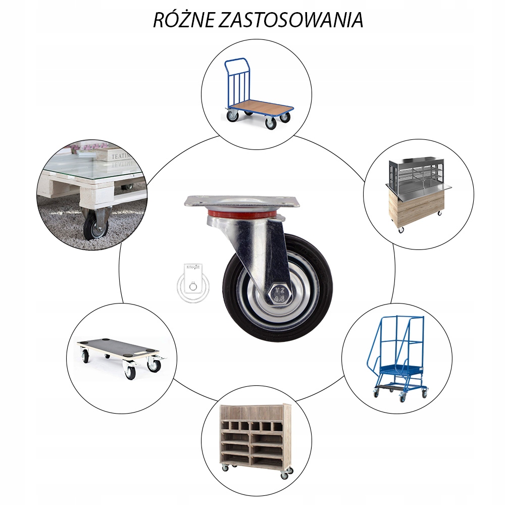 - КОЛЕСО складається із сталевої втулки та гумової шини без слідів, з голчастим підшипником. Колеса мають міцність 50 кг на колесо. Вони повільно зношуються, стійкі до пошкоджень, поглинають удари та вібрацію. Вони обертаються на 360 градусів, полегшуючи маневрування меблями або коляскою. Вони плавно обертаються на твердих і гладких поверхнях, як-от бетон, з дуже невеликим тертям.