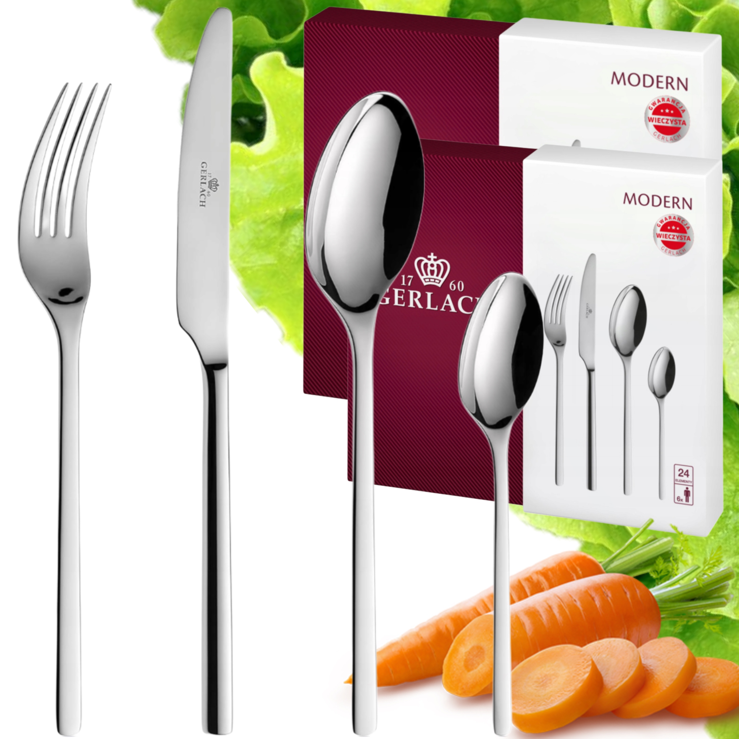 КОМПЛЕКТ 48 СТОЛОВИХ ПРИЛАДІВ ГЛЯНЕЦЬ 12 ОСІБ НАБІР СТОЛОВИХ ПРИЛАДІВ КОРОБКА GERLACH MODERN