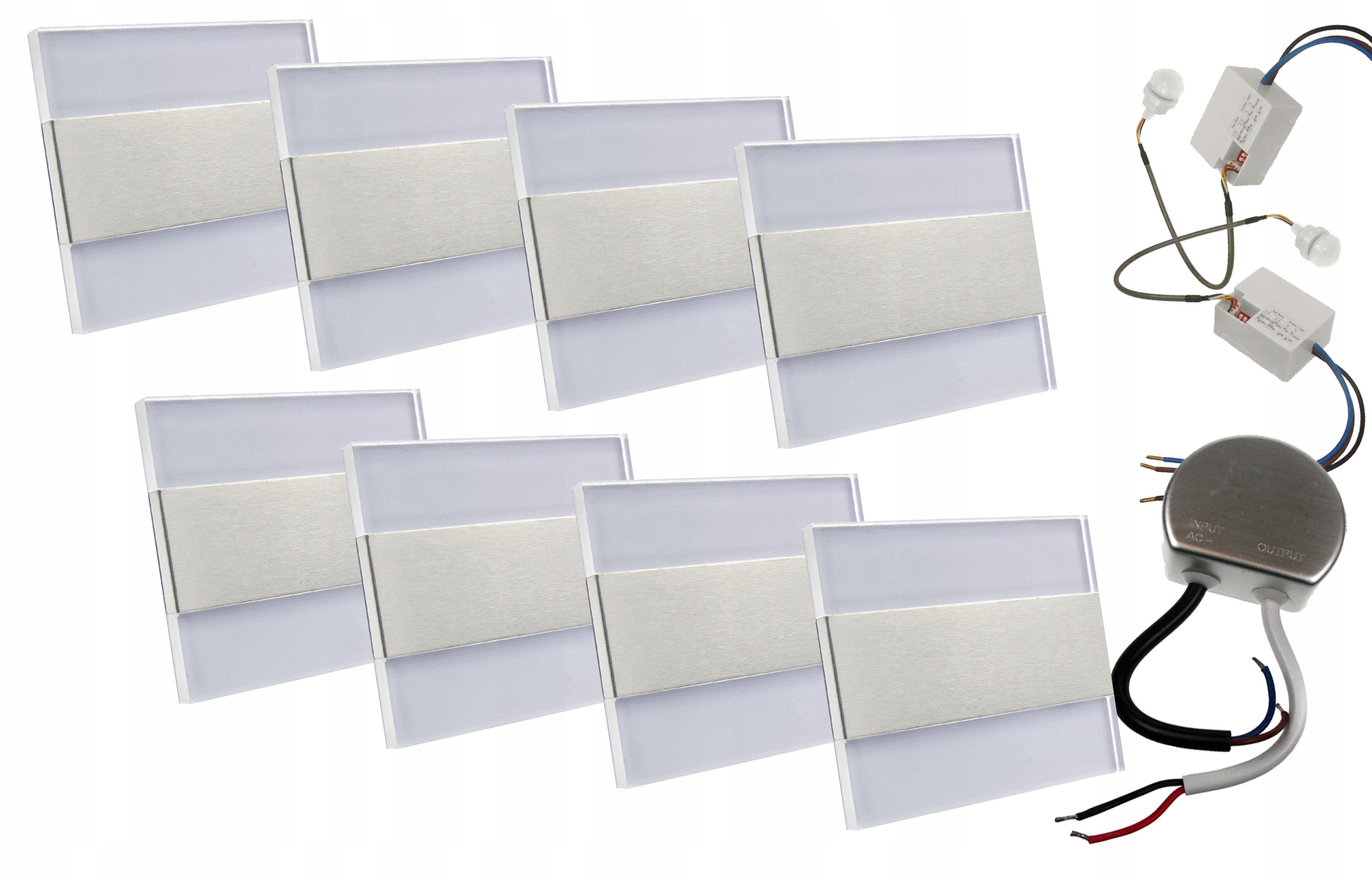 Комплект 8x світлодіодний сходовий світильник + 2содержатели + адаптер живлення