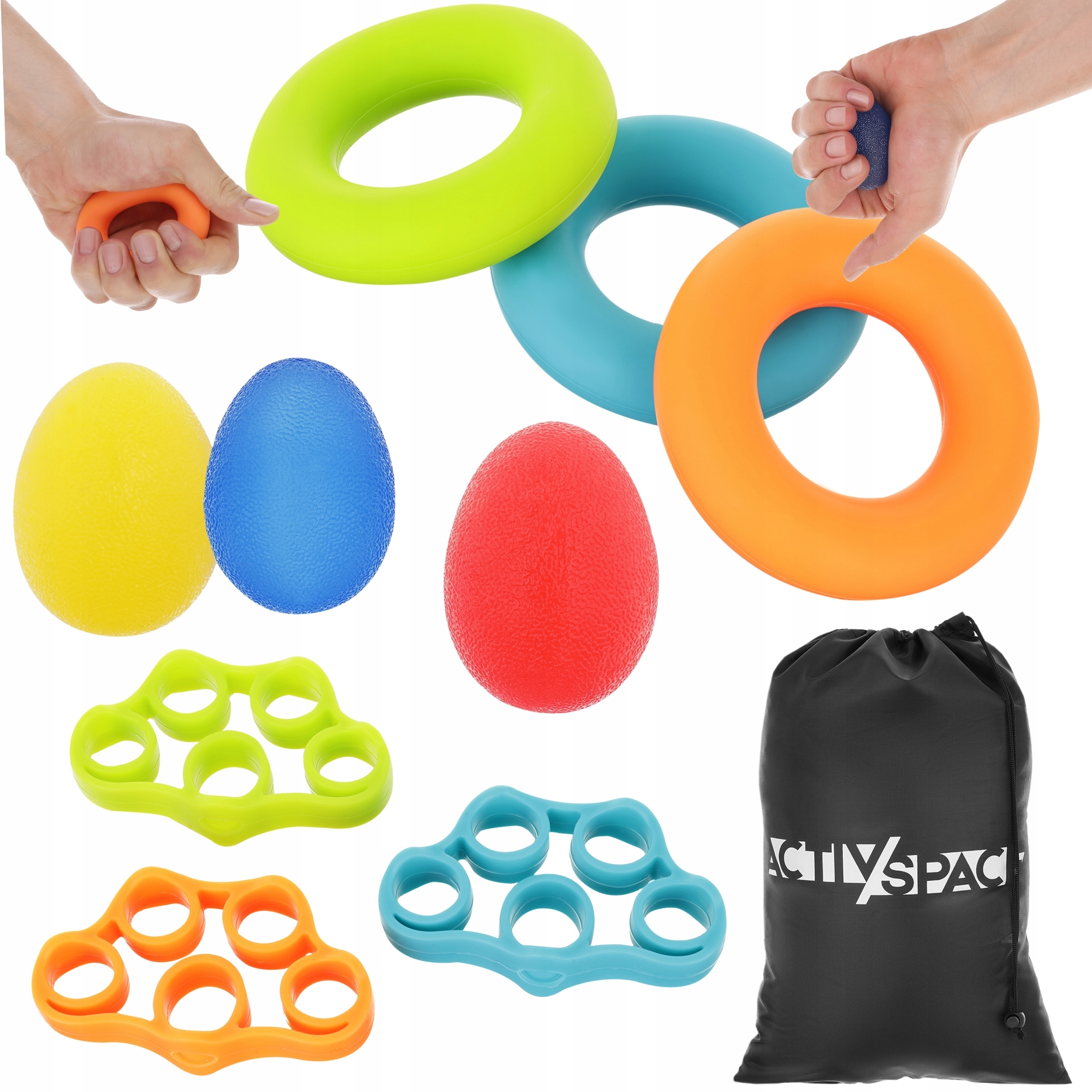 Тренажер для рук від ACTIV/SPACE - це набір з цілих 9 гумок групи! Ви можете легко налаштувати тренажери для рук із різним опором відповідно до своїх здібностей і вимог.
