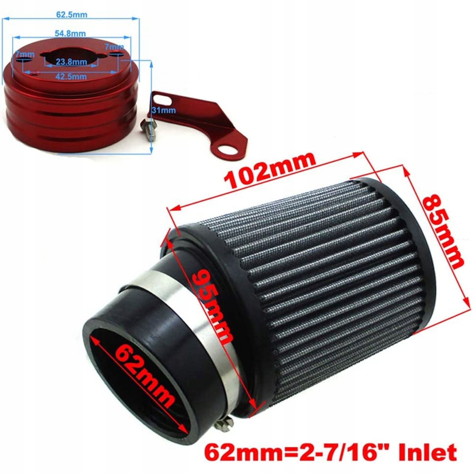 - Діаметр повітряного фільтра: приблизно 62 мм / 2,4 дюйма