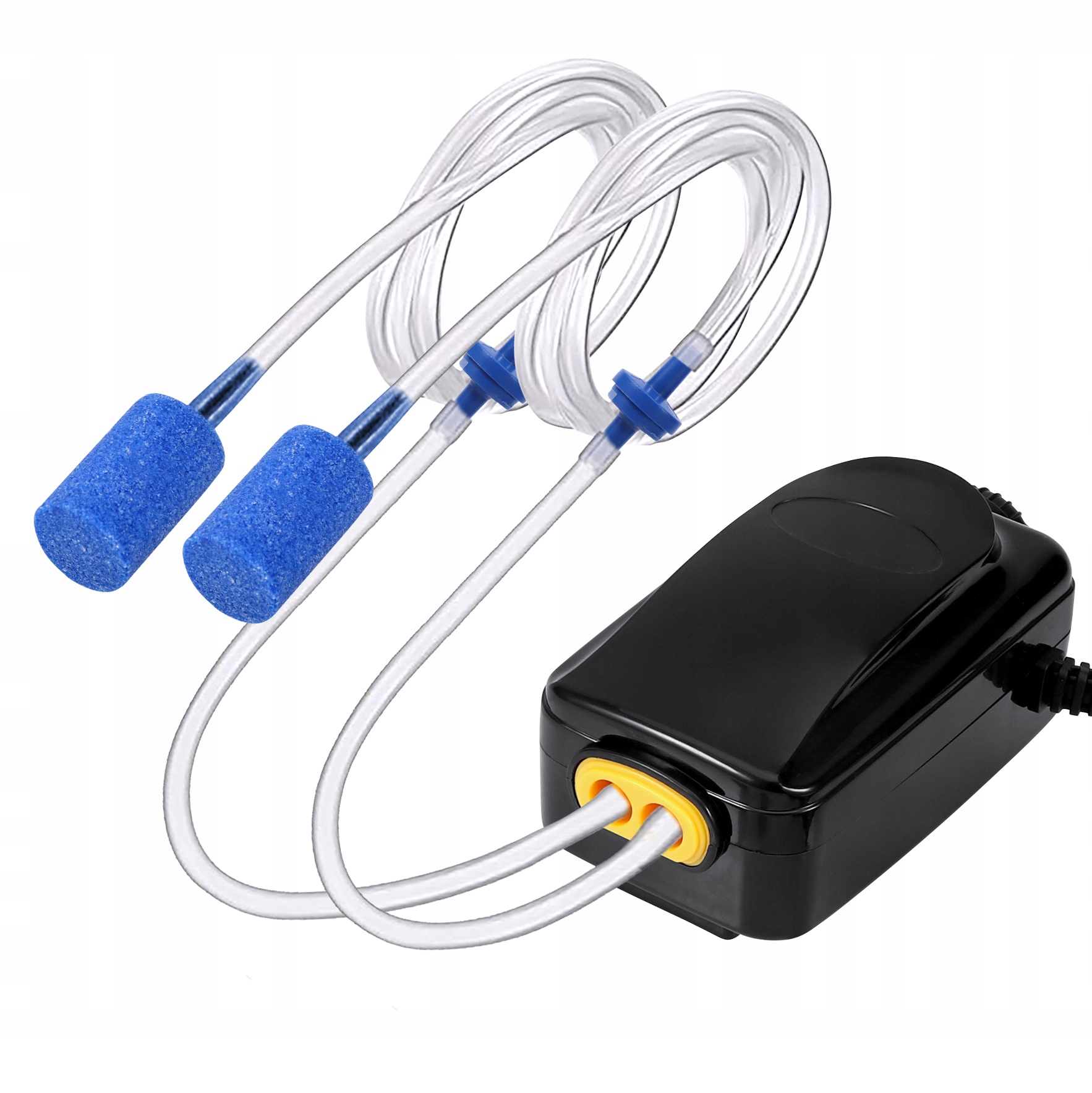 【Подвійні виходи】 Цей акваріумний барботер з 2 виходами, подвійним шланговим повітряним насосом для акваріума, цей акваріумний повітряний насос може аерувати за водночас два акваріуми, його також можна перетворити на один вихід через трійник.
