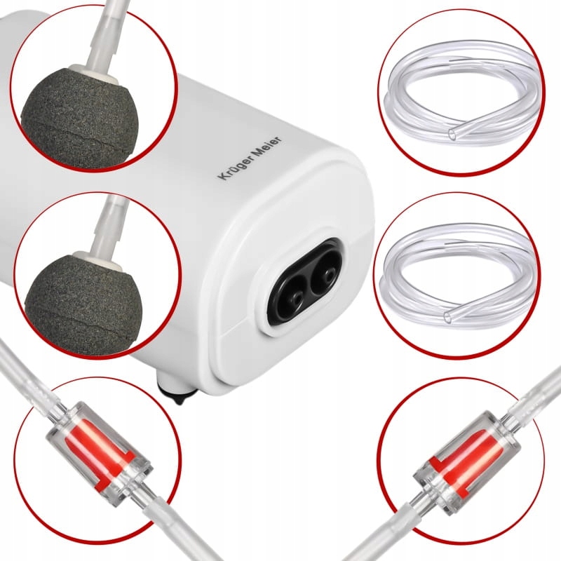 Набір аерації Windboe Kit Duo від перевіреного бренду Kruger Meier. Це повний подвійний комплект для будь-якого акваріума від 50л до 120л. У коробці знаходиться насос з регулюванням потоку повітря з двома виходами, 2 м шланга, 2 зворотних клапана і 2 повітряні камені. Повітряний насос надтихий - це завдяки ідеально збалансованому двигуну, відмінній якості Крюгера Майєра та гумовим ніжкам. Загальна назва аераторів «brzęczek» тут втрачає сенс. Він безперечно програє. Його компактний дизайн забезпечує оптимальні результати енергоефективності.