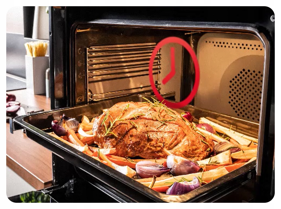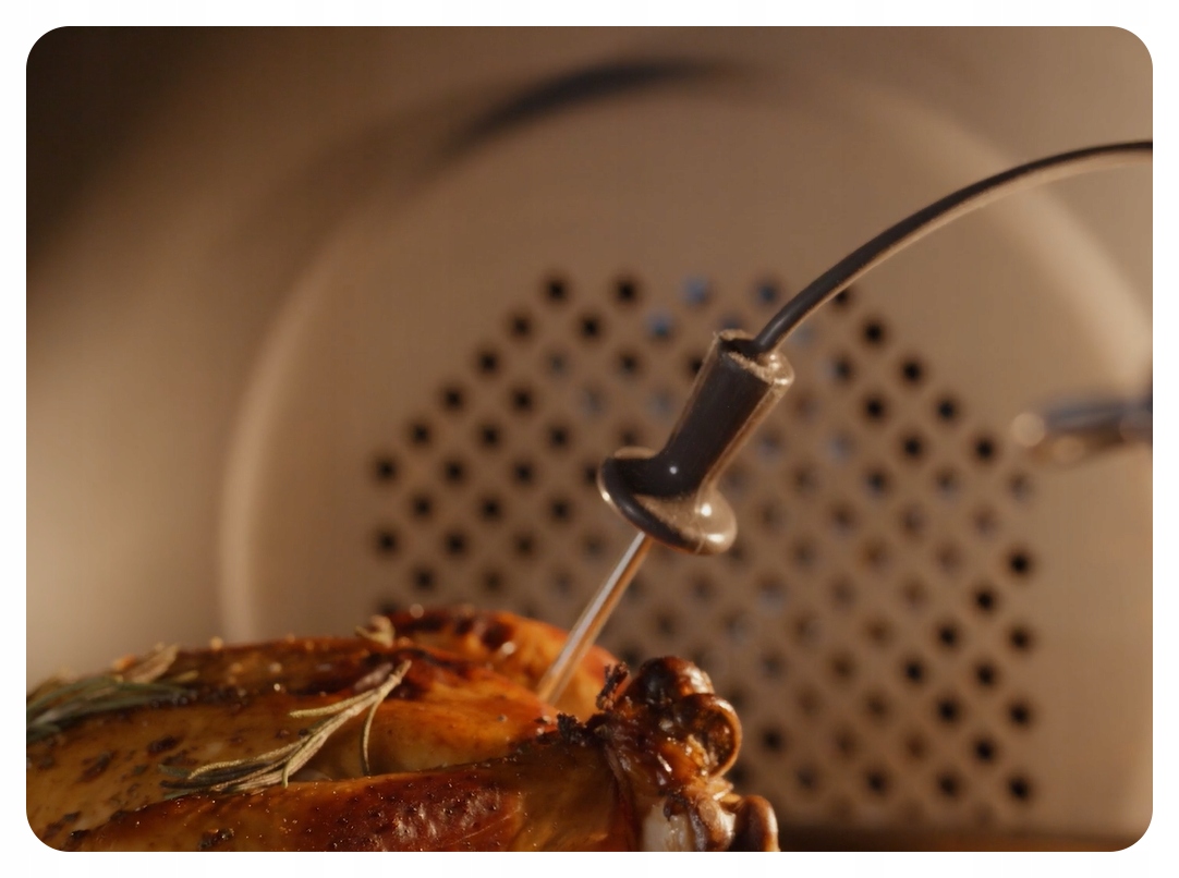 Ви, ймовірно, багато разів протикали або розрізали форму для випічки, щоб перевірити ступінь її пропікання. Завдяки датчику внутрішньої температури це більше не буде потрібно! Все, що вам потрібно зробити, це помістити його у форму для запікання та встановити на програматорі температуру, яку ви хочете досягти всередині. Термометр буде особливо корисний під час смаження м'яса. Без ризику підгоряння зовні та недостатнього приготування всередині!