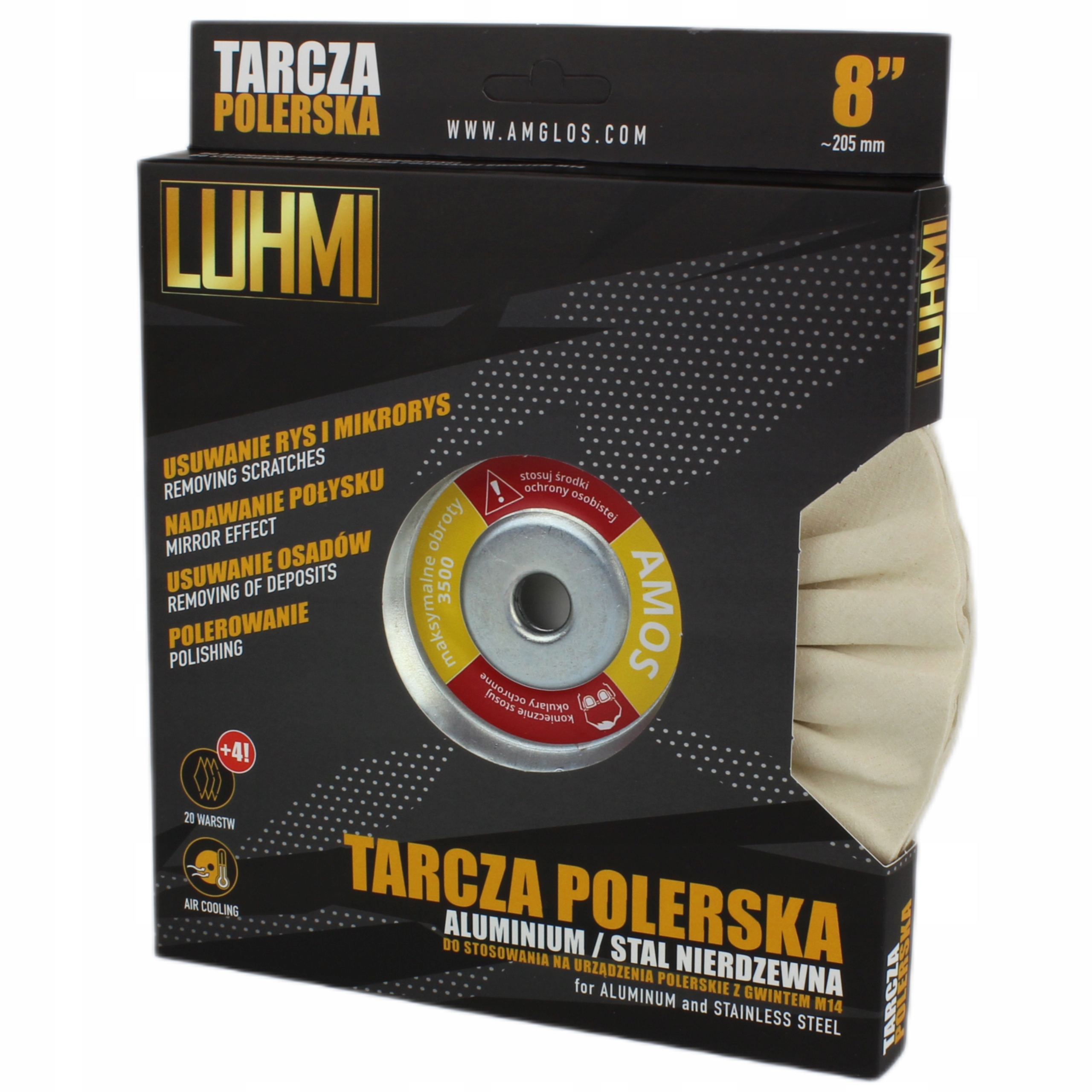 AMOS LUHMI діаметром 205 мм - універсальний диск, призначений для одноетапного полірування алюмінієвих і нержавіючих поверхонь. AMOS LUHMI виготовлений з 16 шарів тканини середньої жорсткості. AMOS LUHMI shield рекомендується використовувати на добре підготовленій поверхні. або трохи зруйновано. Використовуйте з пастою OneStep Paste.