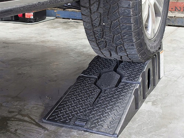 Пандуси оснащені високим порогом, який захищає автомобіль від скочування вперед. Крім того, весь пандус покритий спеціальною конструкцією, що збільшує зчеплення.