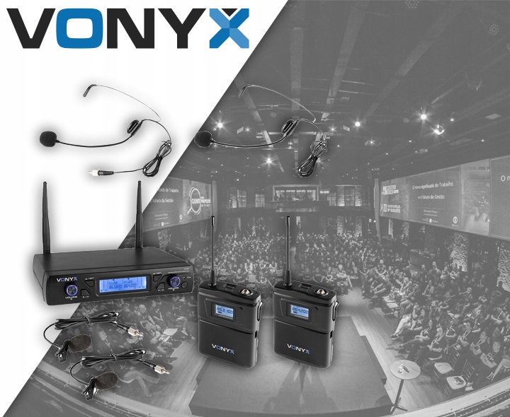 Vonyx WM62B — два бездротові УВЧ-мікрофони-гарнітури з 16 каналами