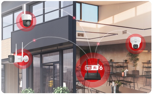Крім того, система на основі рішення HiLook не обтяжує мережеве з'єднання в приміщенні, оскільки відео передача відбувається безпосередньо між пристроями, без використання маршрутизатора WiFi.